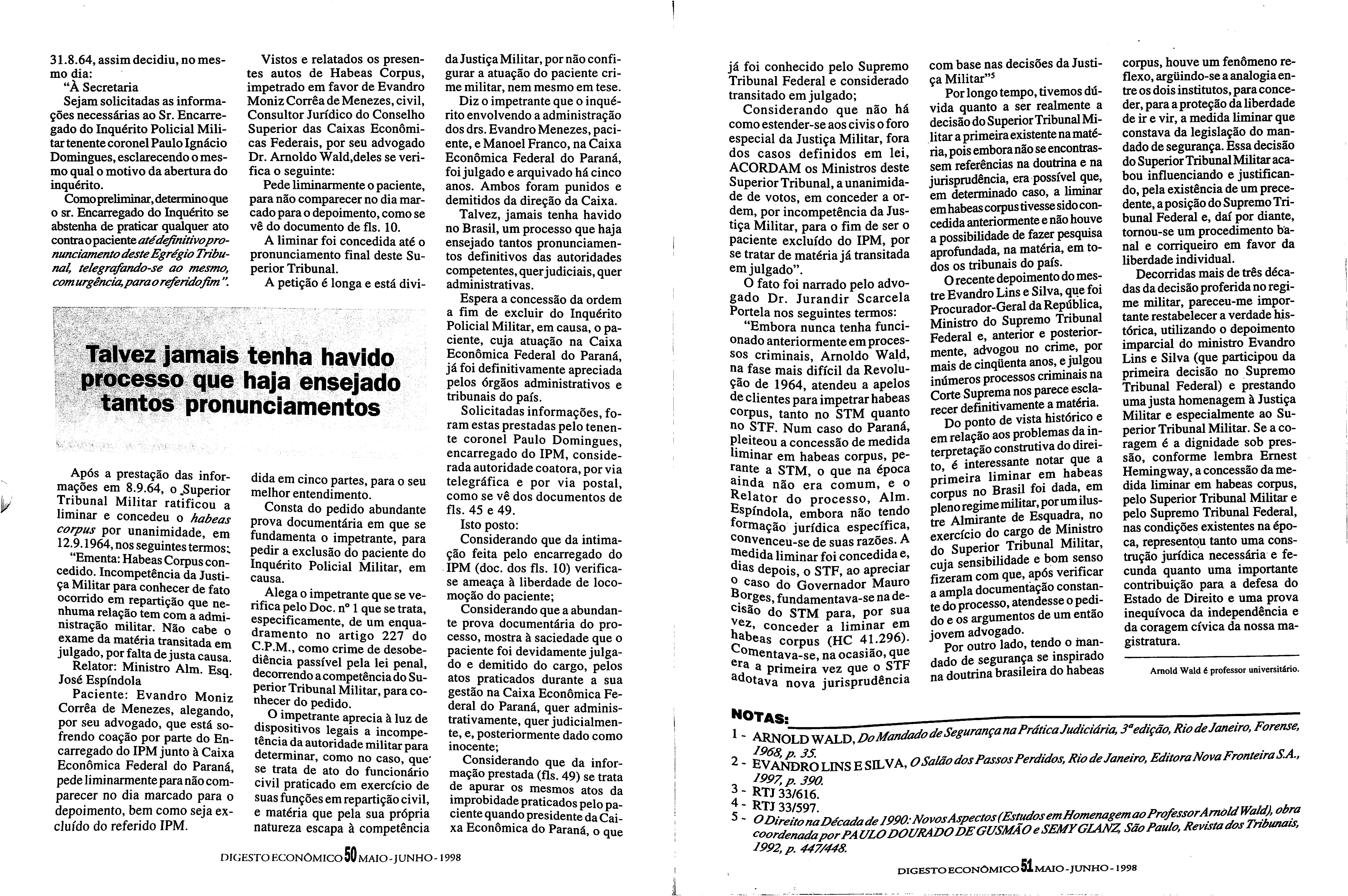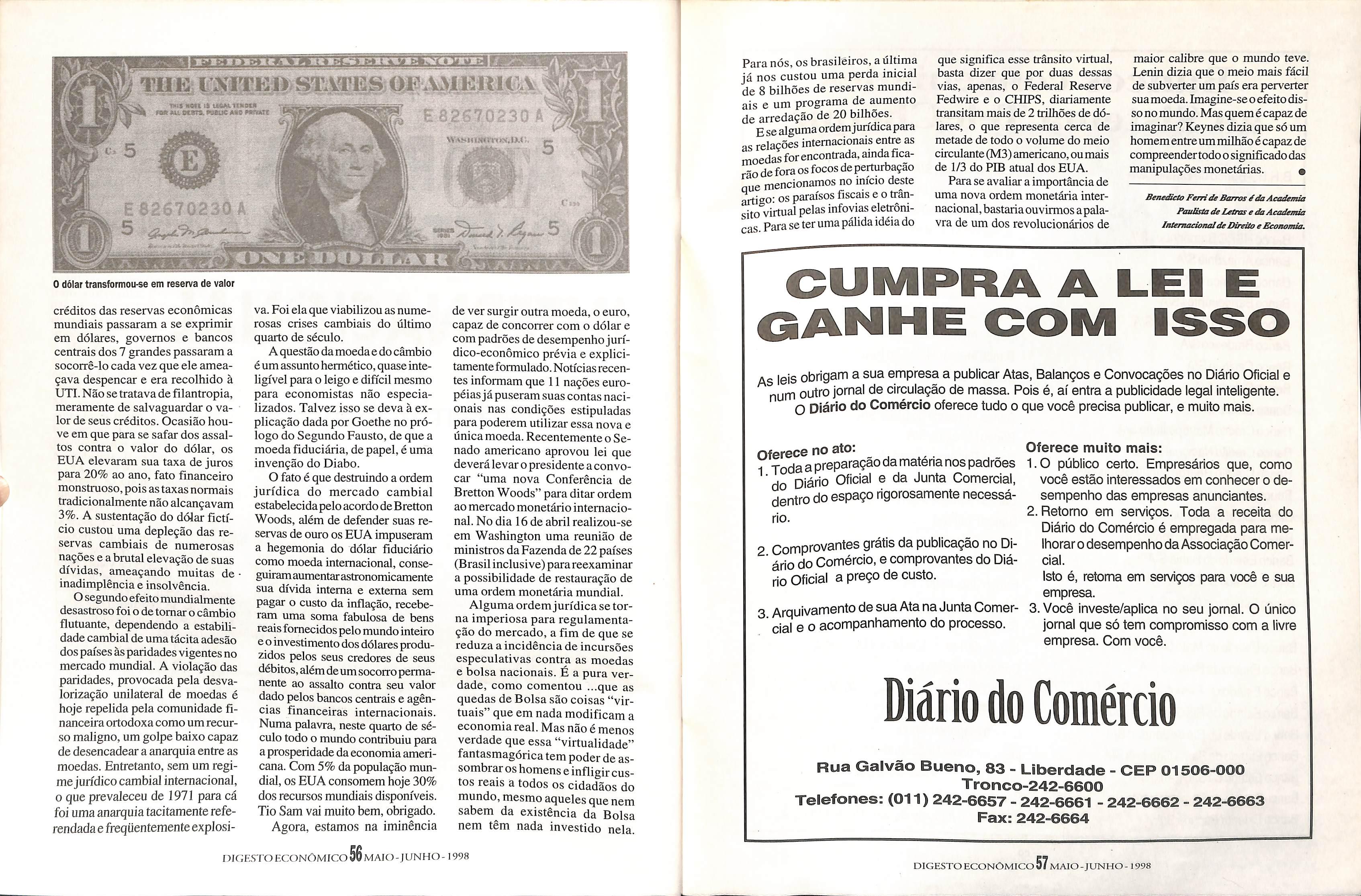 Por outro lado, o Mercosul é o paraíso idealizado pela Argenti na, Uruguai e Paraguai que pude ram sair de um “déficit” na balan ça comercial de 2 bilhões de dóla res em 1993, para um “superávit” de 3 bilhões, em 1997, muitas vezes, dificultando a entrada de produtos brasileiros, por expedi entes protelatórios, e conseguin do colocar seus produtos no Bra sil, porque souberam negociar melhor os Tratados de Assunção e de Ouro Preto. E a conjuntura internacional facilitará a entrada de produtos dos países em que a desvalorização cambial foi eleva da e em que a inflação interna é ou será inferior à desvalorização. 46mak)-junho-i