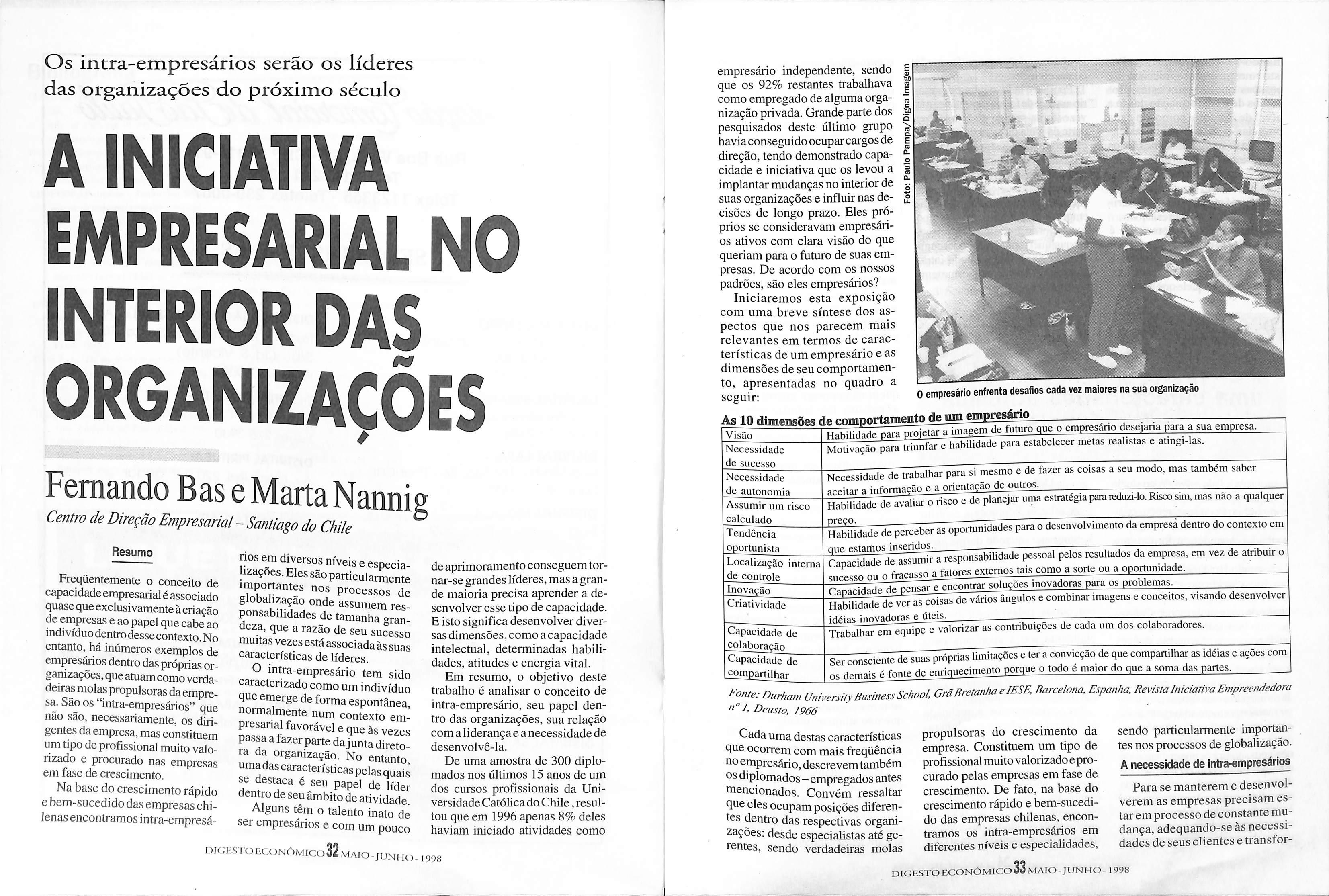 "O empresário. Definições e mitos , Revista Iniciativa Empreendedora n" 2, Deusto, 1997 op. cit.