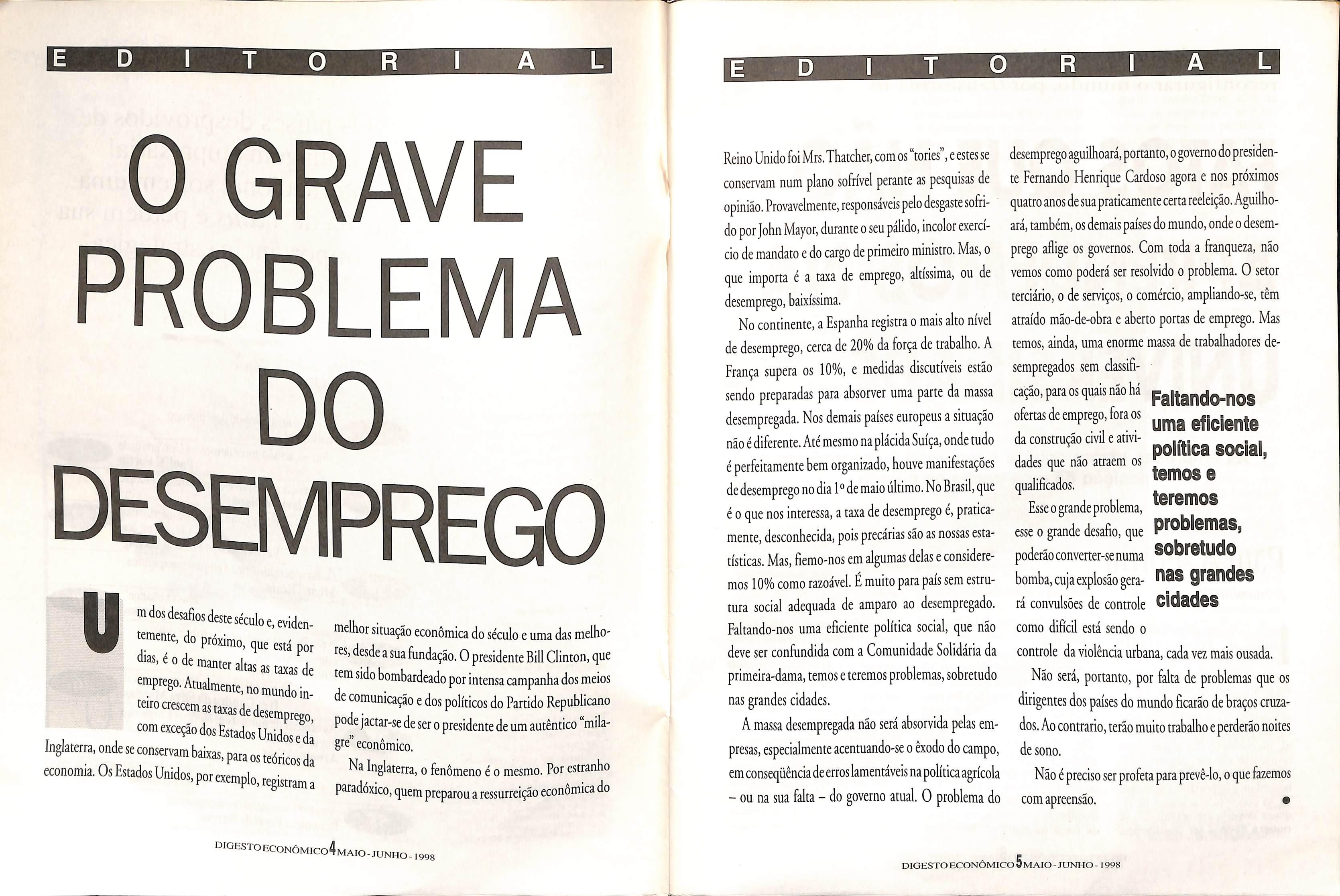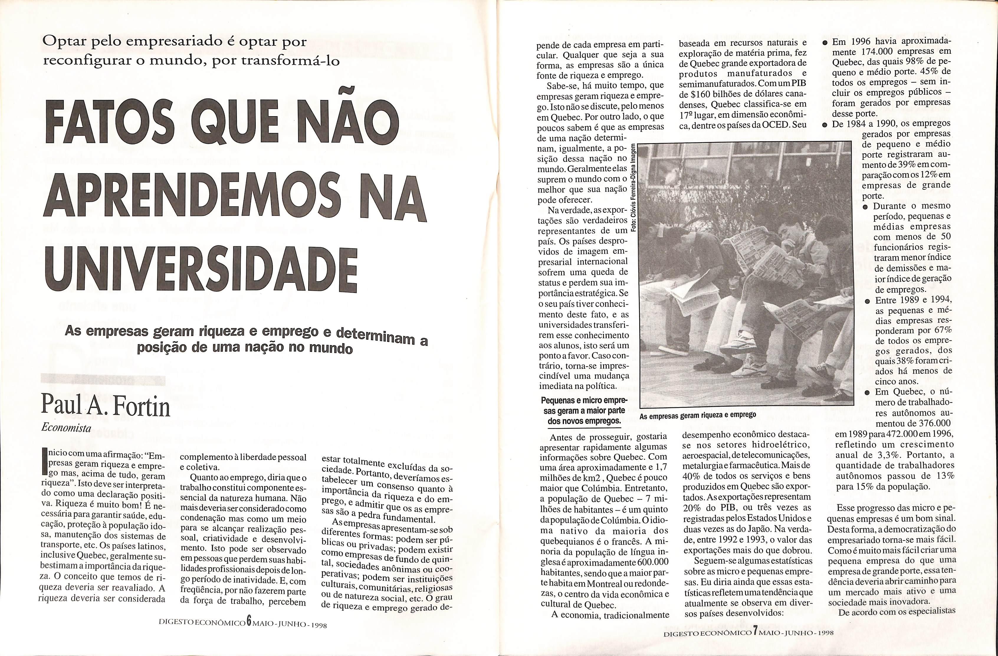 Jovens treinados em uma pro fissão, quer em nível secundário, colegial ou universitário, constios DIGESTO econômico 12 MAIO-JUNHO-1998