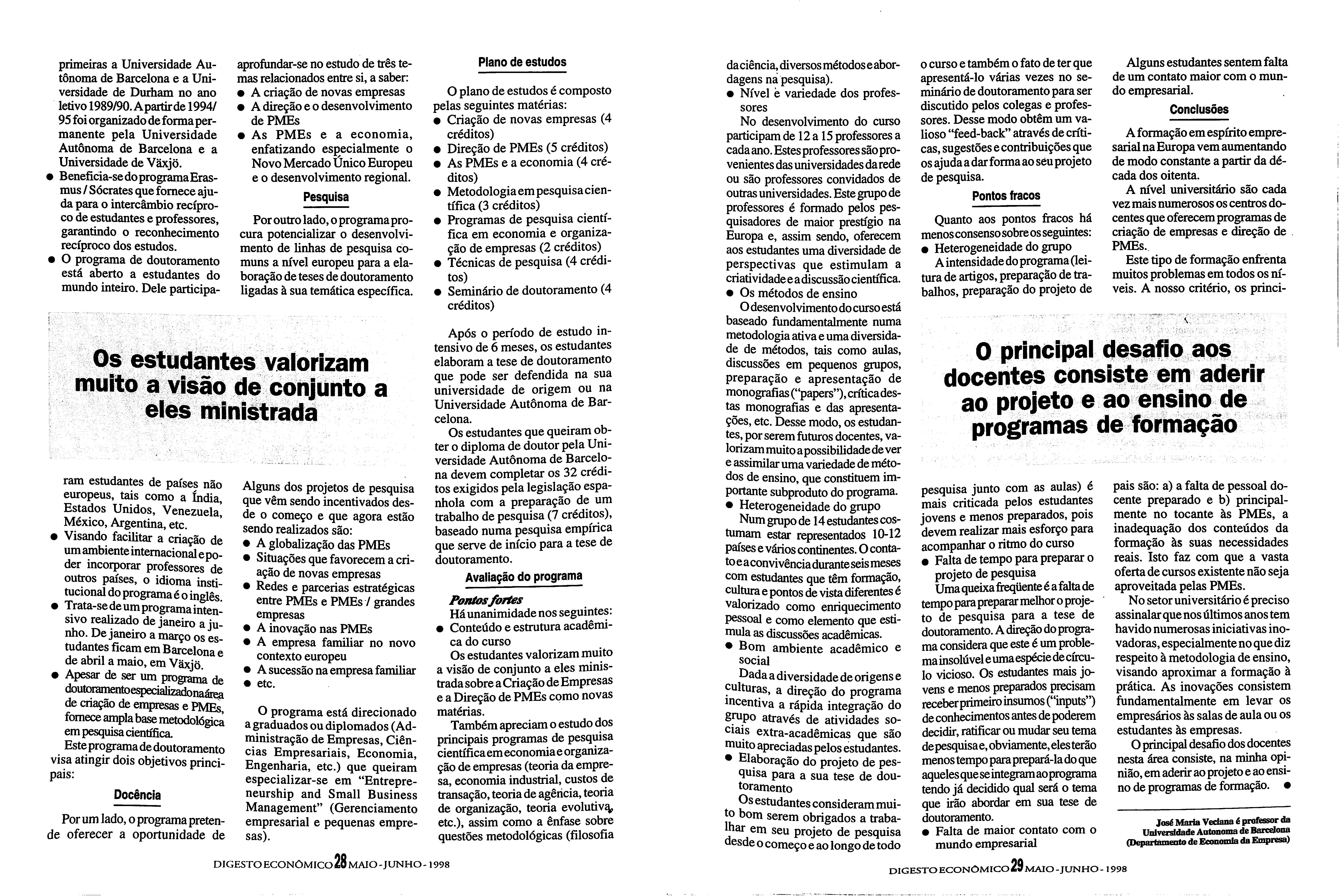 Veciana, J.M.: Formas y experiendas sobre el fomento de iniciativas empresariales desde !a Universidad. Docu mento inédito, elaborado para a Fundação Empresa e Ciências da Universidade Autônoma de Barce lona- UAB, 1995.