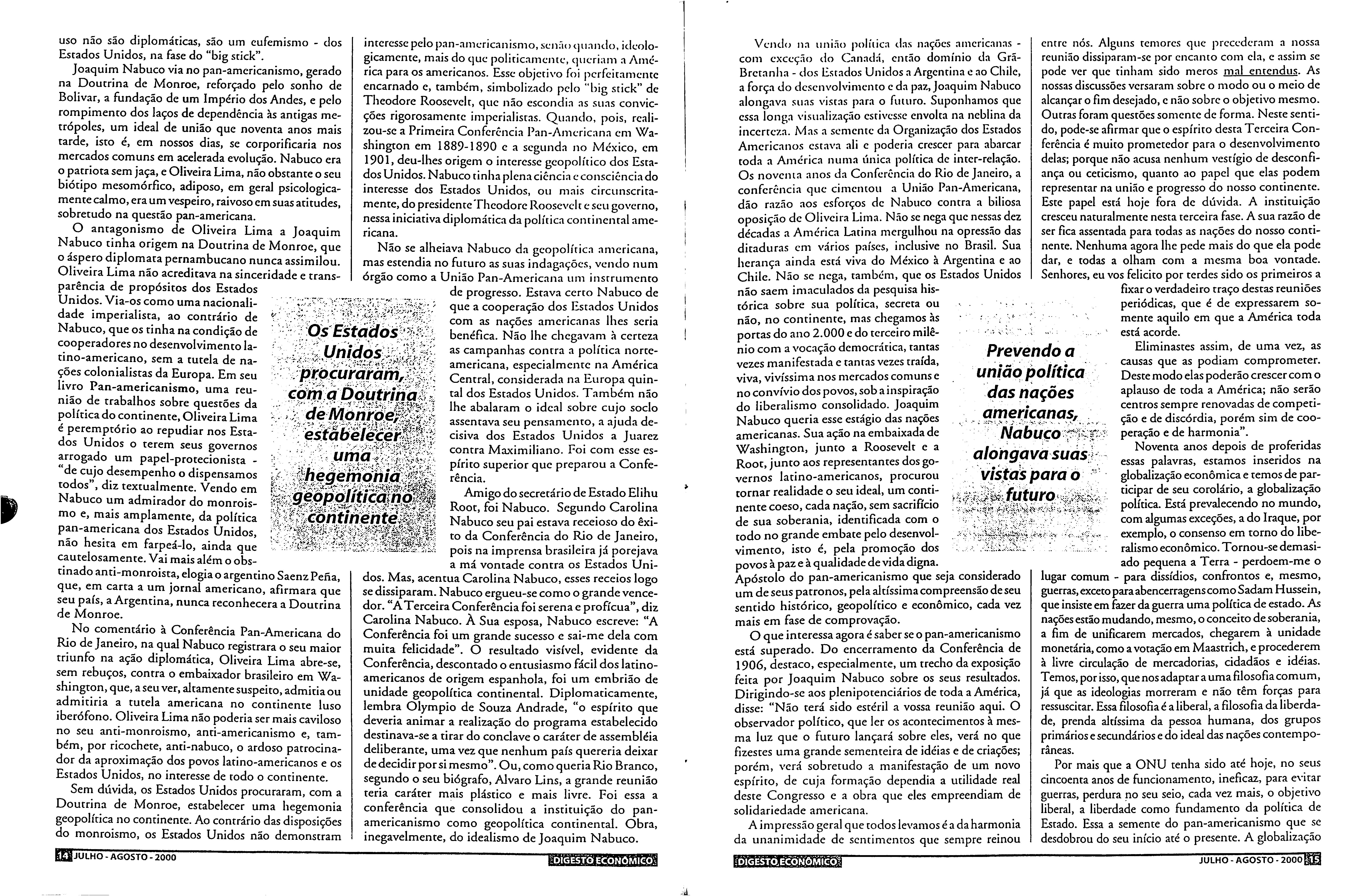 Prevendo a união política das nações americanas, Nabuço alongavàsuas yisjtás paráò futuro