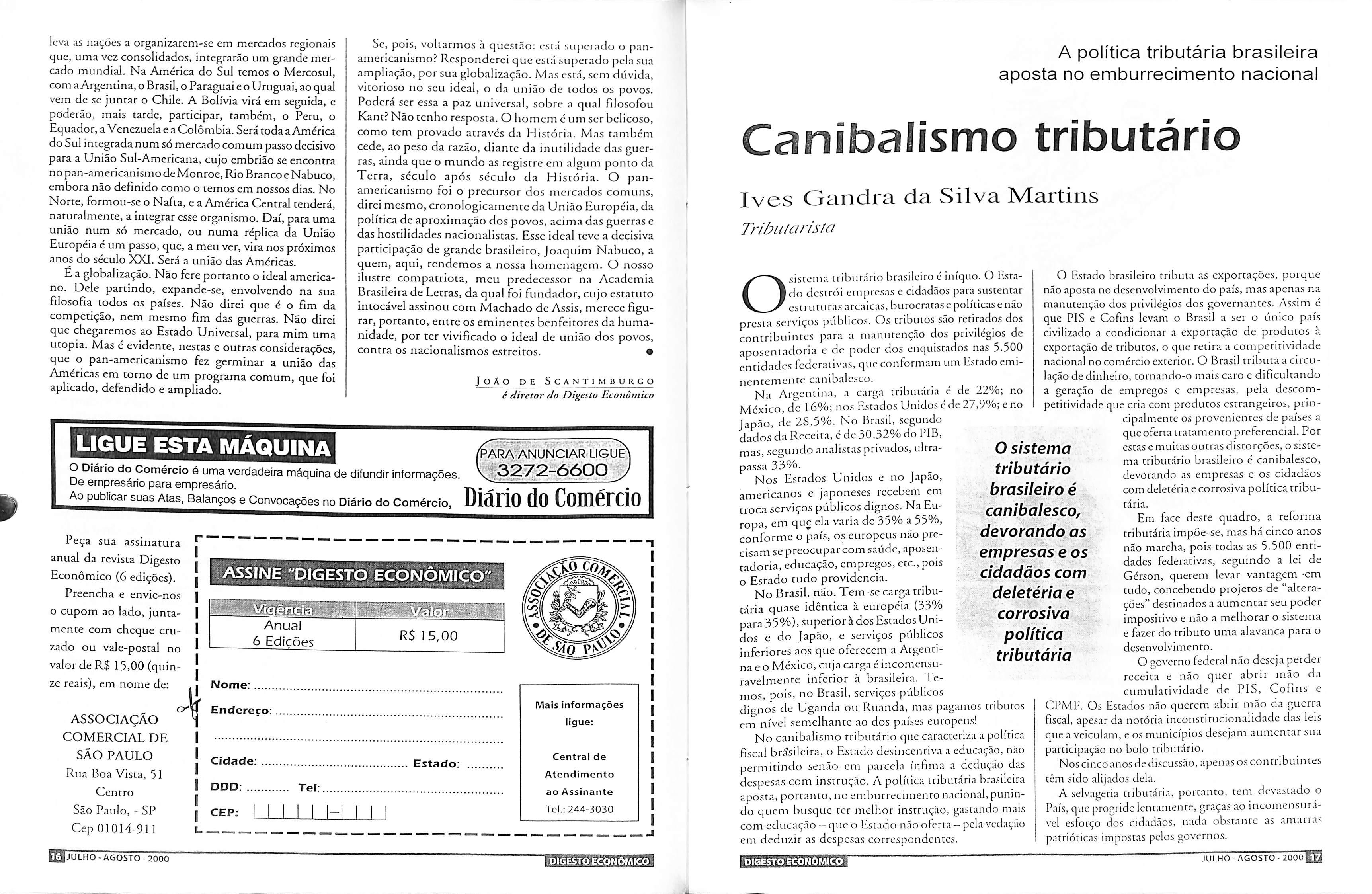 Peça sua assinatura anual da revista Digesto Econômico (6 edições).