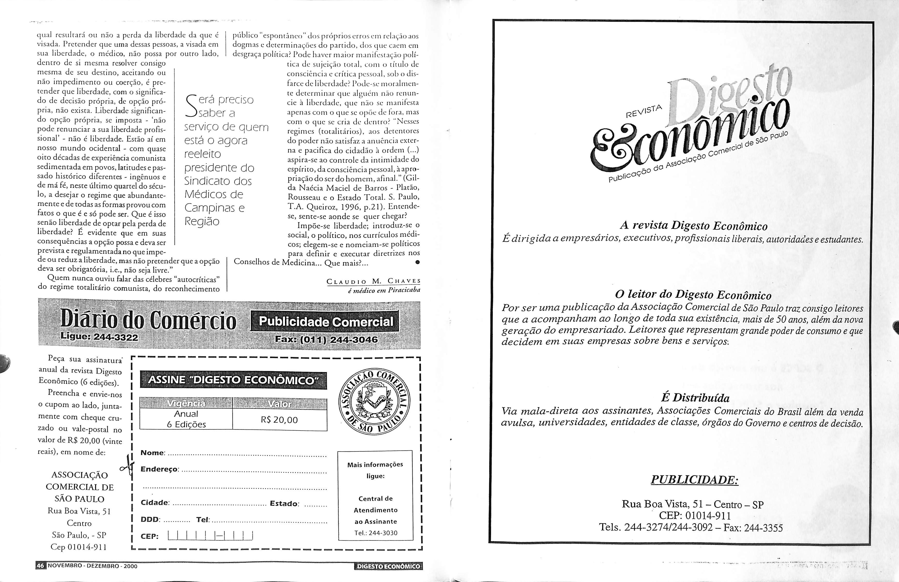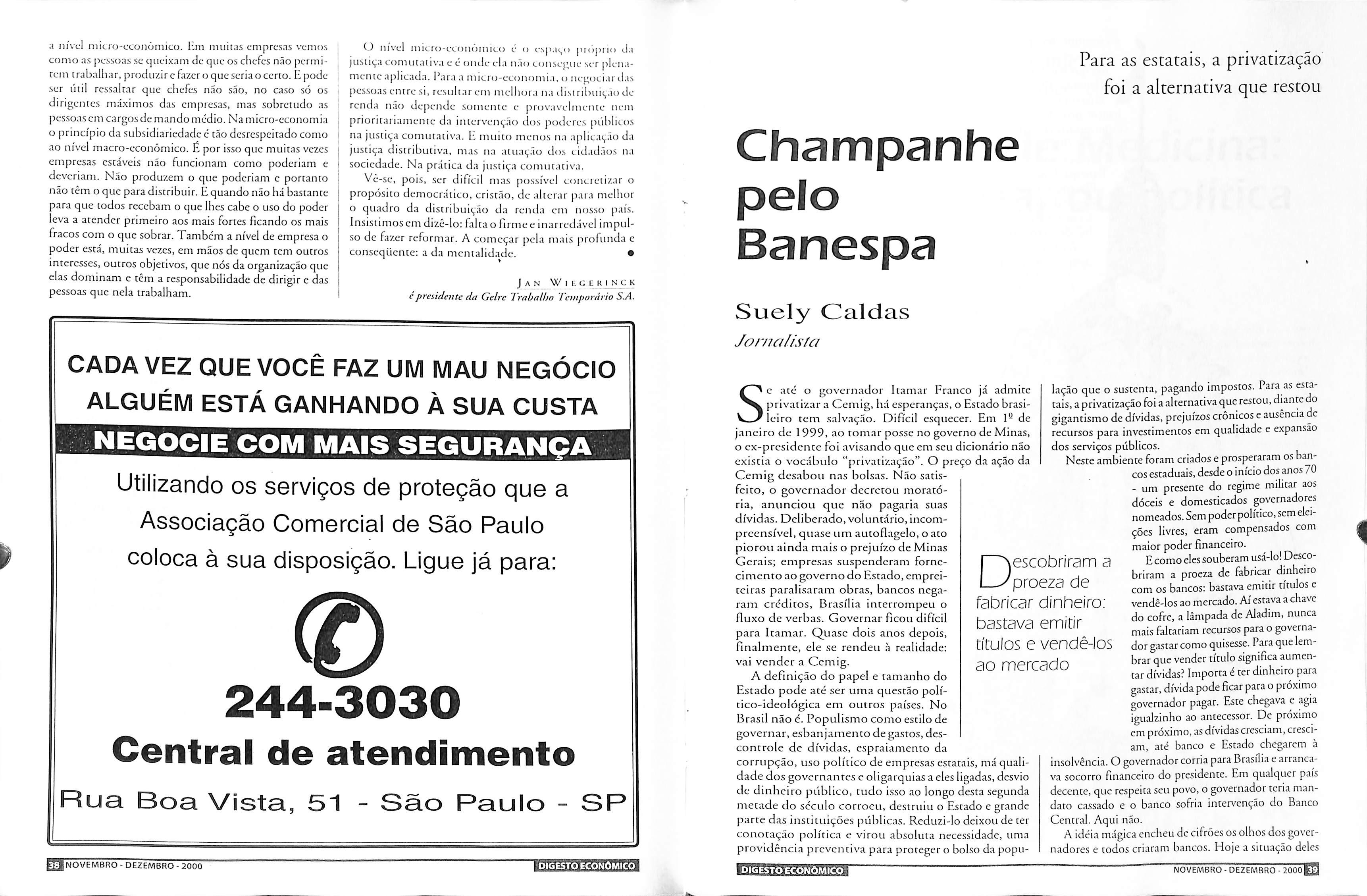 DIGESTO ECONÔMICO, número 405, novembro e dezembro 2000