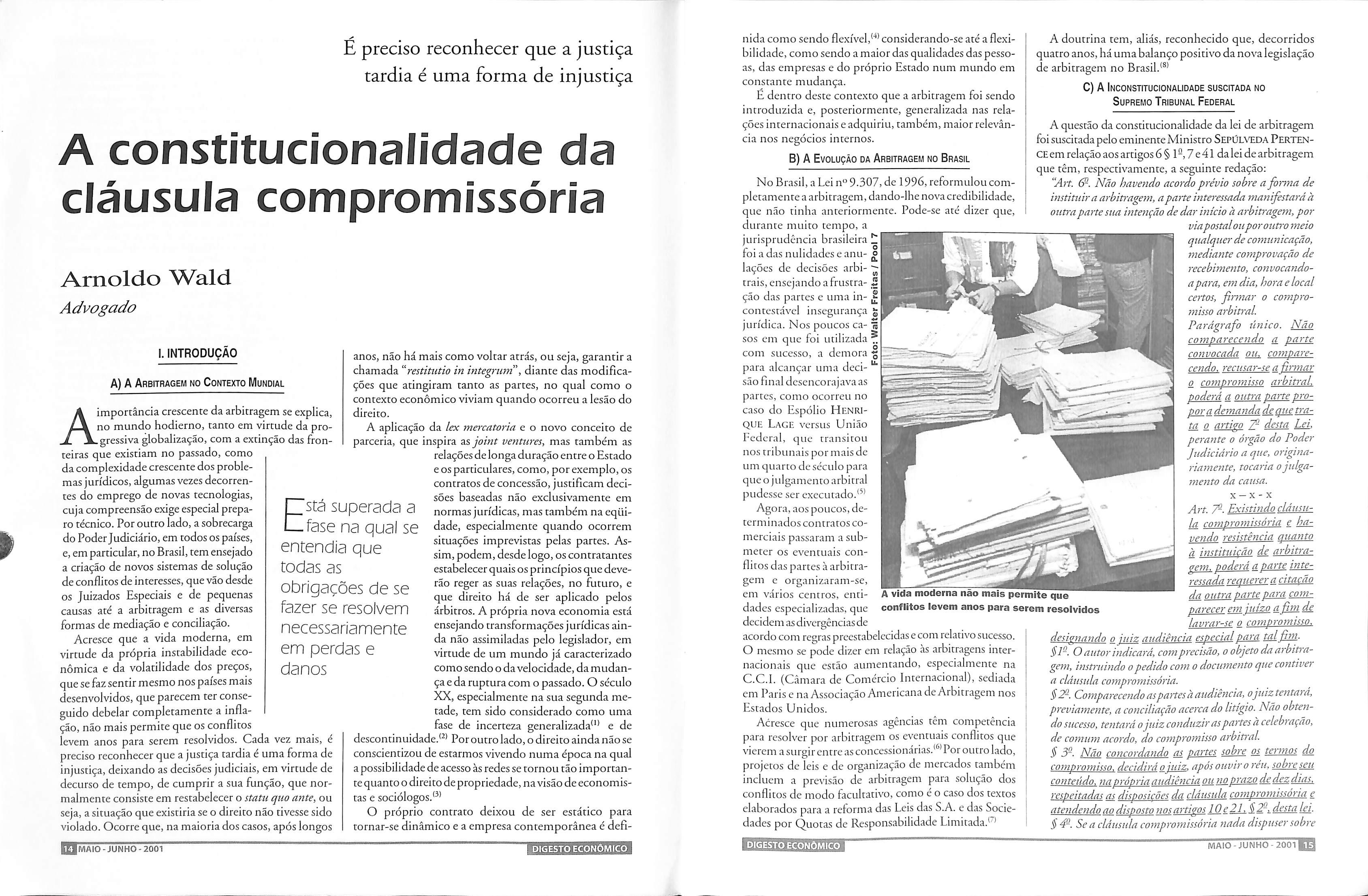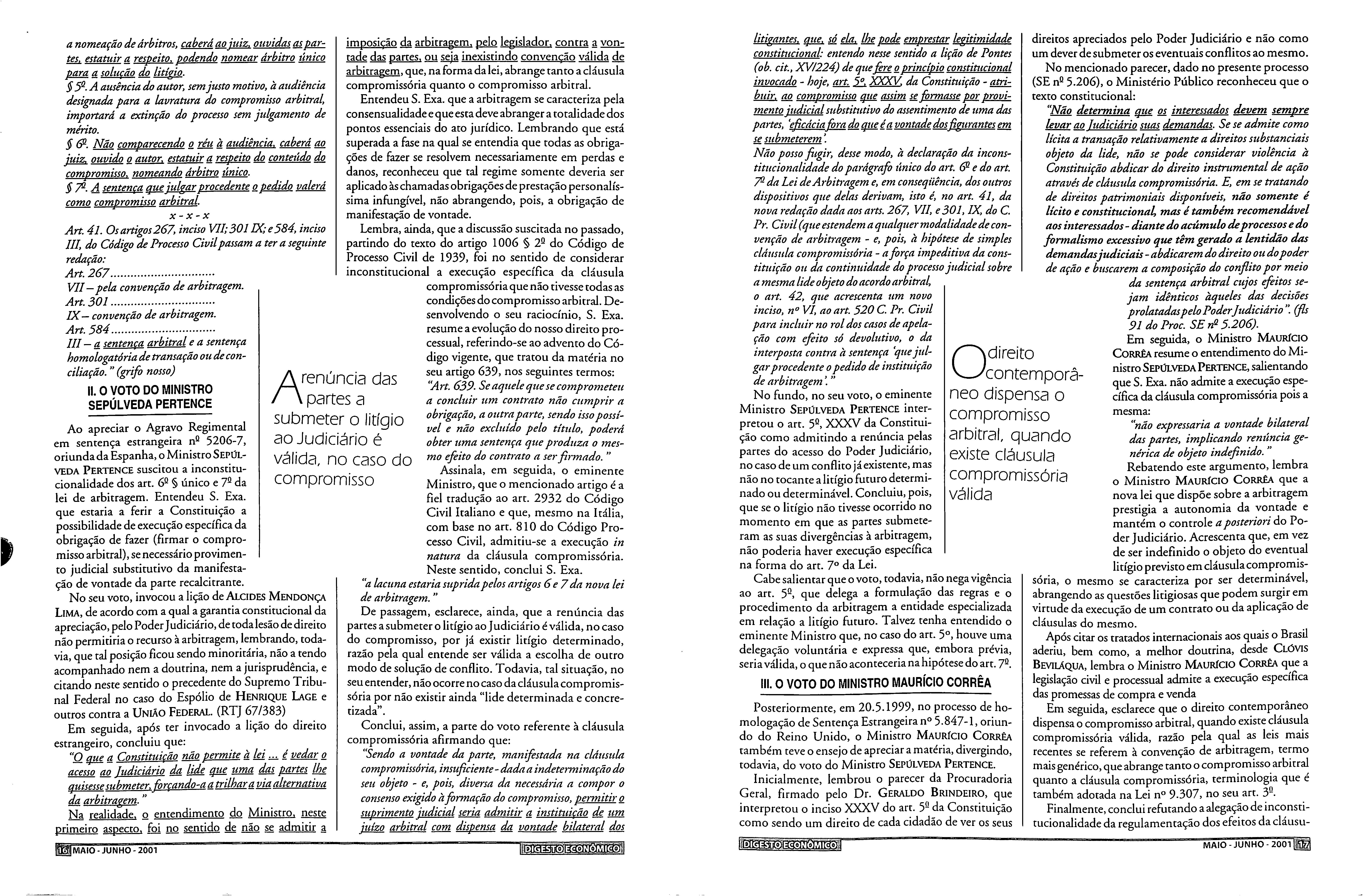 A questão da constitucionalidade da lei de arbitragem foi suscitada pelo eminente Ministro Sepül\'EDa Perten ce em relação aos artigos 6 § 1-, 7 e 41 da lei de arbitragem que têm, respectivamente, a seguinte redação: ‘M/t. 6^. Não havendo acordo prévio sobre a fonna de instituira arbitragem, a pane interessada manifestará a oíítraparte sua nitenção de dar mício a arbinagem, por viapostalou por outro meio qualquer de comunicação, mediante comprovação de recebimeiito, convocandoapara, em dia, hora e local certos, finnar o compro misso arbitrai