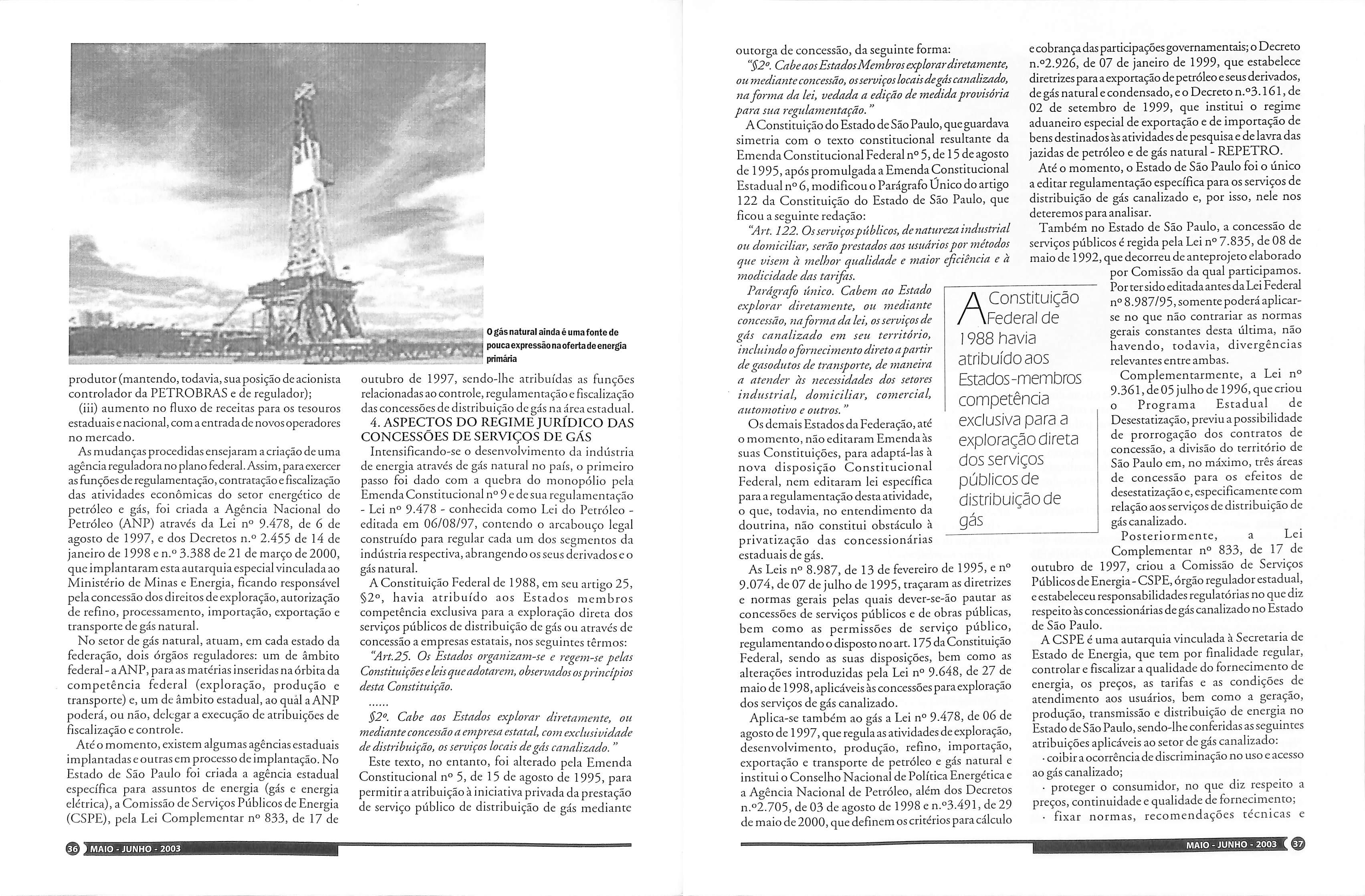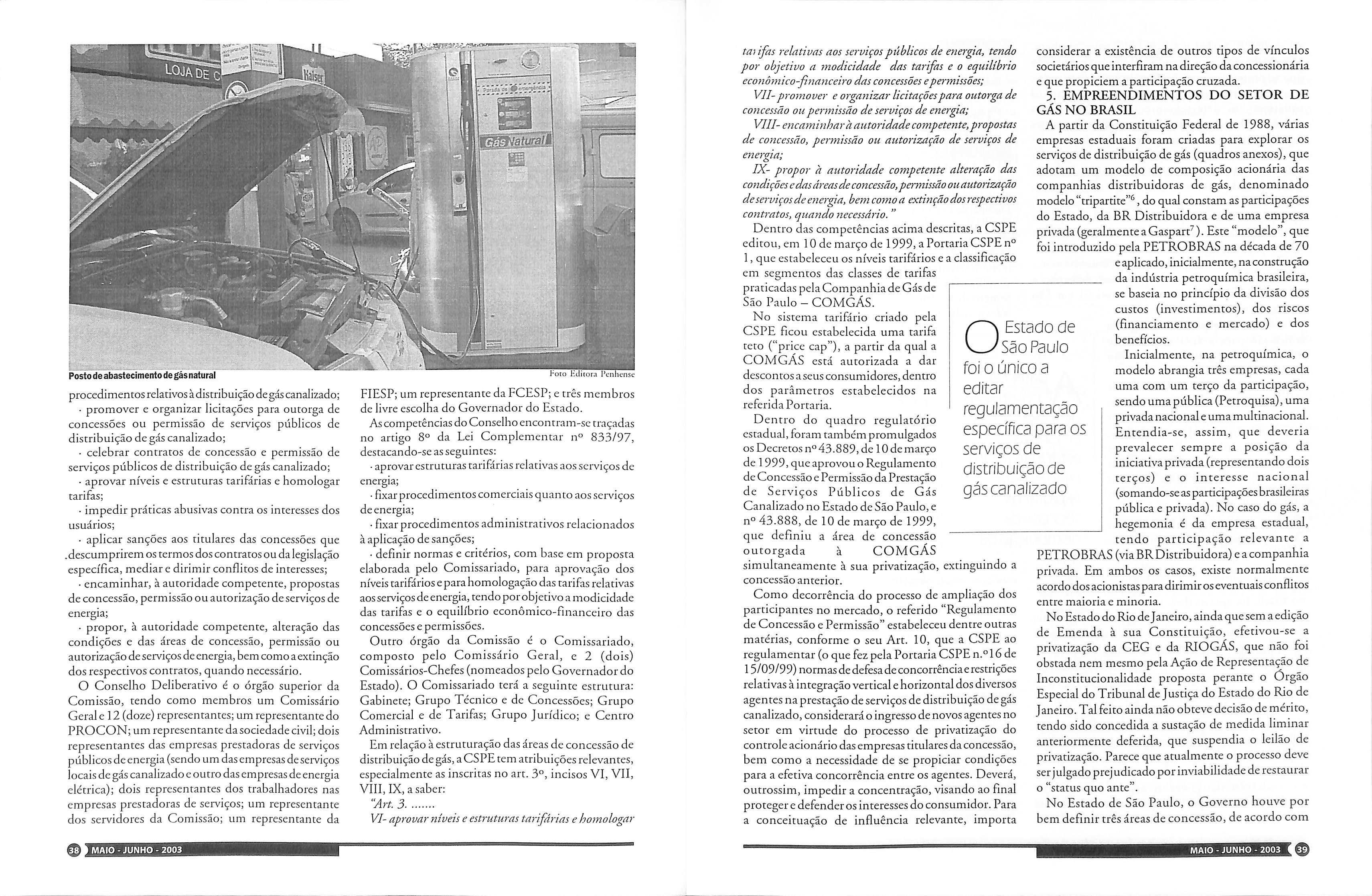 permitir a atribuição à iniciativa privada da prestação de sei-viço público de distribuição de gás mediante gás canalizado; 5, de 15 de agosto de 1995, para ao consumidor, no que diz respeito a proteger o preços, continuidade e qualidade de fornecimento; fixar normas, recomendações técnicas e n.