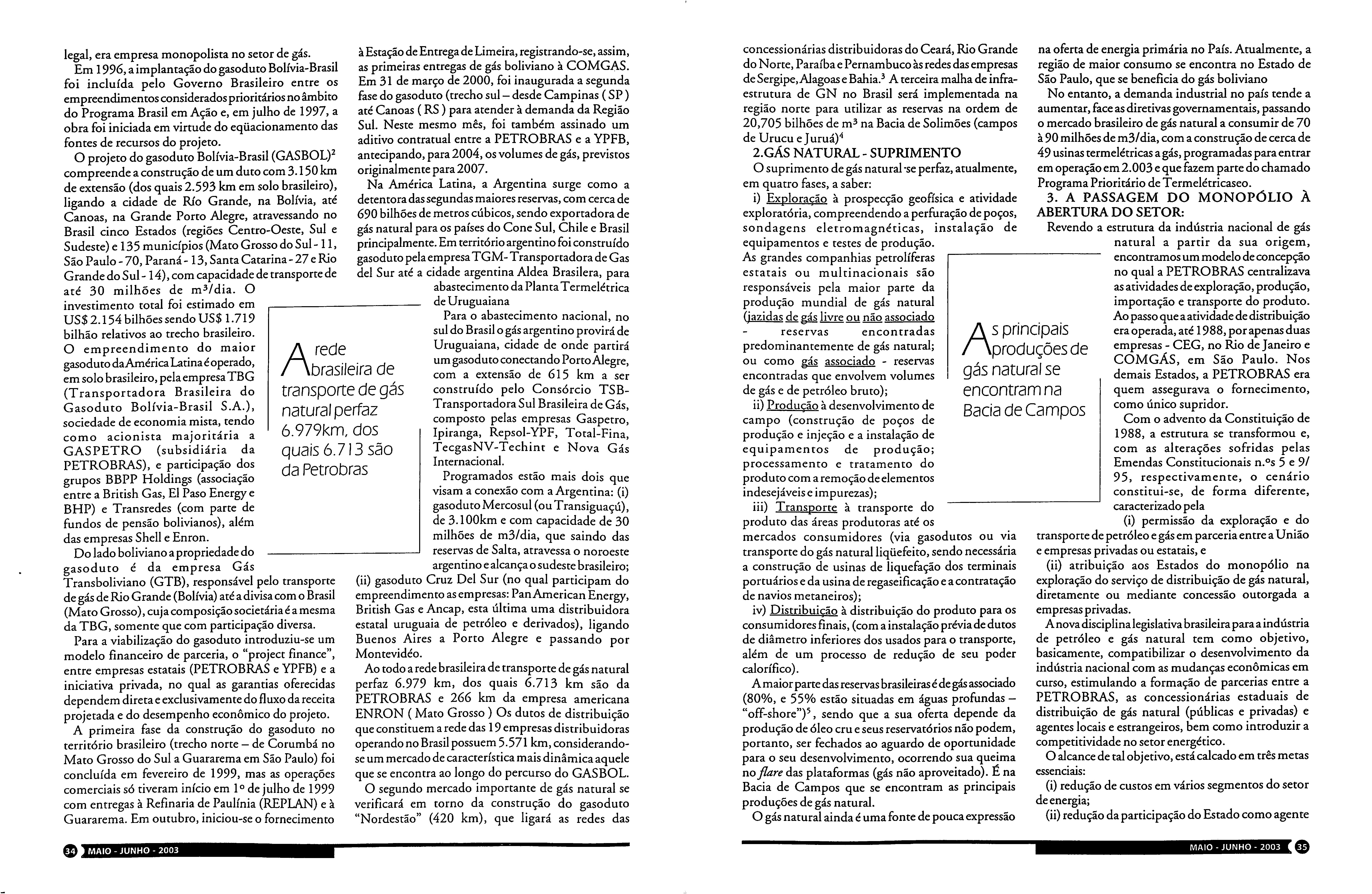 A observação do estágio de desenvolvimento do mercado de gás no Brasil, há apenas dois anos atrás, dava conta da existência de um potencial relevante, porém limitado pela insuficiência de oferta. Hoje, a atual disponibilidade interna de gás natural e os projetos de importação, seja por gasodutos ou sob a forma de GNL, fazem com que a oferta dos próximos dez anos atinja um potencial de cerca de 90 milhões de metros cúbicos por dia, o que significa mais do que quintuplicar o tamanho do mercado atual. Ressalte-se que a estimativa de importação do gás argentino está baseada não nas capacidades de transporte dos gasodutos em construção ou planejados, mas sim na avaliação do governo argentino sobre as possibilidades de exportação para o Brasil e Chile até 2010'^'L
