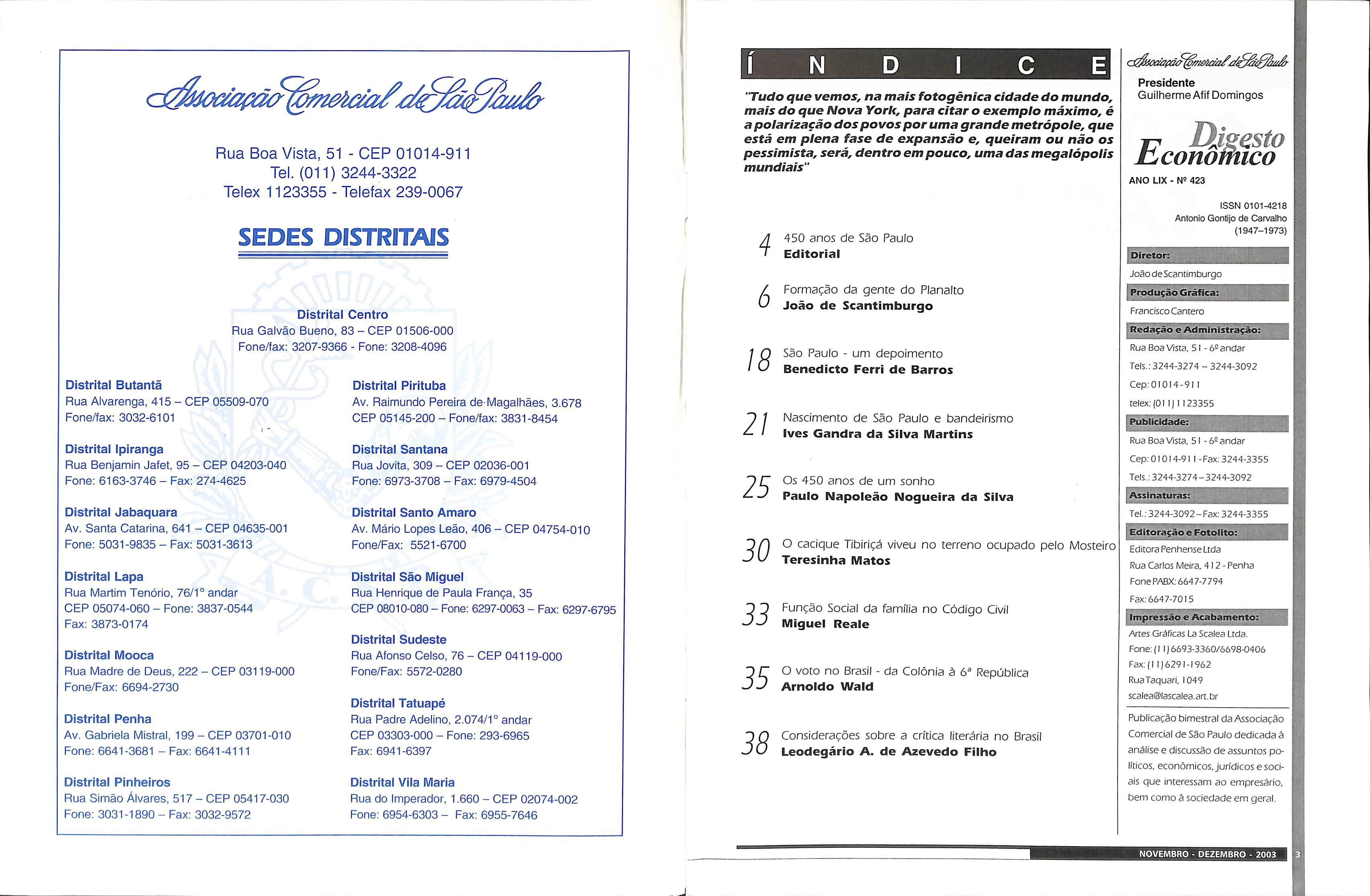 DIGESTO ECONÔMICO, número 423, novembro e dezembro 2003