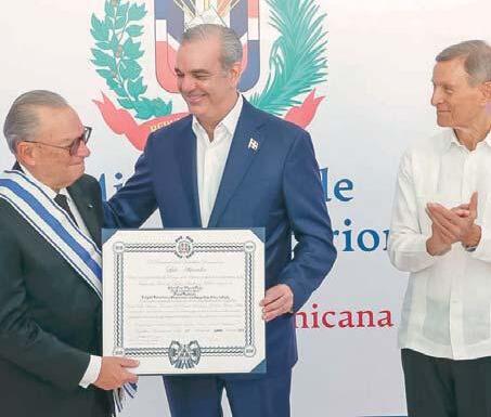 SANTO DOMIGO. El presidente Luis Abinader condecoró ayer al empresario y propulsor del turismo dominicano, Frank Rainieri Marranzini, fundador del Grupo Puntacana, con la Orden del Mérito de Duarte, Sánchez y Mella en el grado de Gran Cruz, Placa de Plata, la principal distinción otorgada por el Estado dominicano.