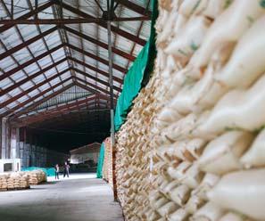 Los almacenes del Ingenio Porvenir llenos de azúcar.