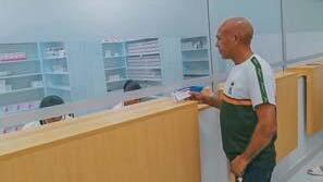 Un señor retira un fármaco en una de las farmacias del PMAC.