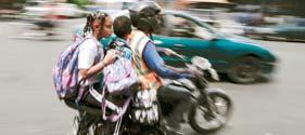SD. Al no contar con otra opción estos dos menores de edad tratan de llegar a su centro educativo de la manera que sea posible. En este caso, en la cola de un motor en el que la jovencita, de unos 10 años, va casi colgando fuera del asiento del vehículo de dos ruedas.