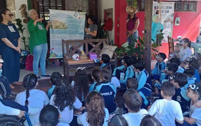 a vida real. Estudantes do 1º e 2º ano da Escola Básica Municipal (EBM) Antônio João Mendes, do Balneário Camacho, em Jaguaruna, vivenciaram uma experiência transformadora ao conhecerem a casa onde moram os personagens do livro “O Gambazinho Travesso”.