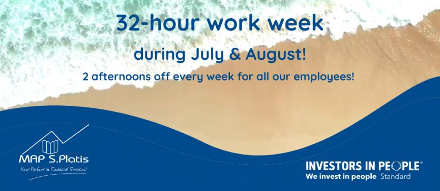 ρεπό κατά τη διάρκεια του καλοκαιριού και τους μήνες Ιούλιο – Αύγουστο. Δηλαδή, το προσωπικό θα εργάζεται 32 ώρες στη βάση μιας τυπικής 4-ήμερης εβδομάδας εργασίας απολαμβάνοντας ταυτόχρονα τις ίδιες απολαβές και τα ίδια ωφελήματα». «Το πρόγραμμα Summer Afternoons αποτελεί ένα καλό παράδειγμα της κουλτούρας που καλλιεργούμε στον Όμιλο και που έχει στο επίκεντρο τις ανάγκες του σύγχρονου εργαζομένου, αναγνωρίζοντας εμπράκτως την
