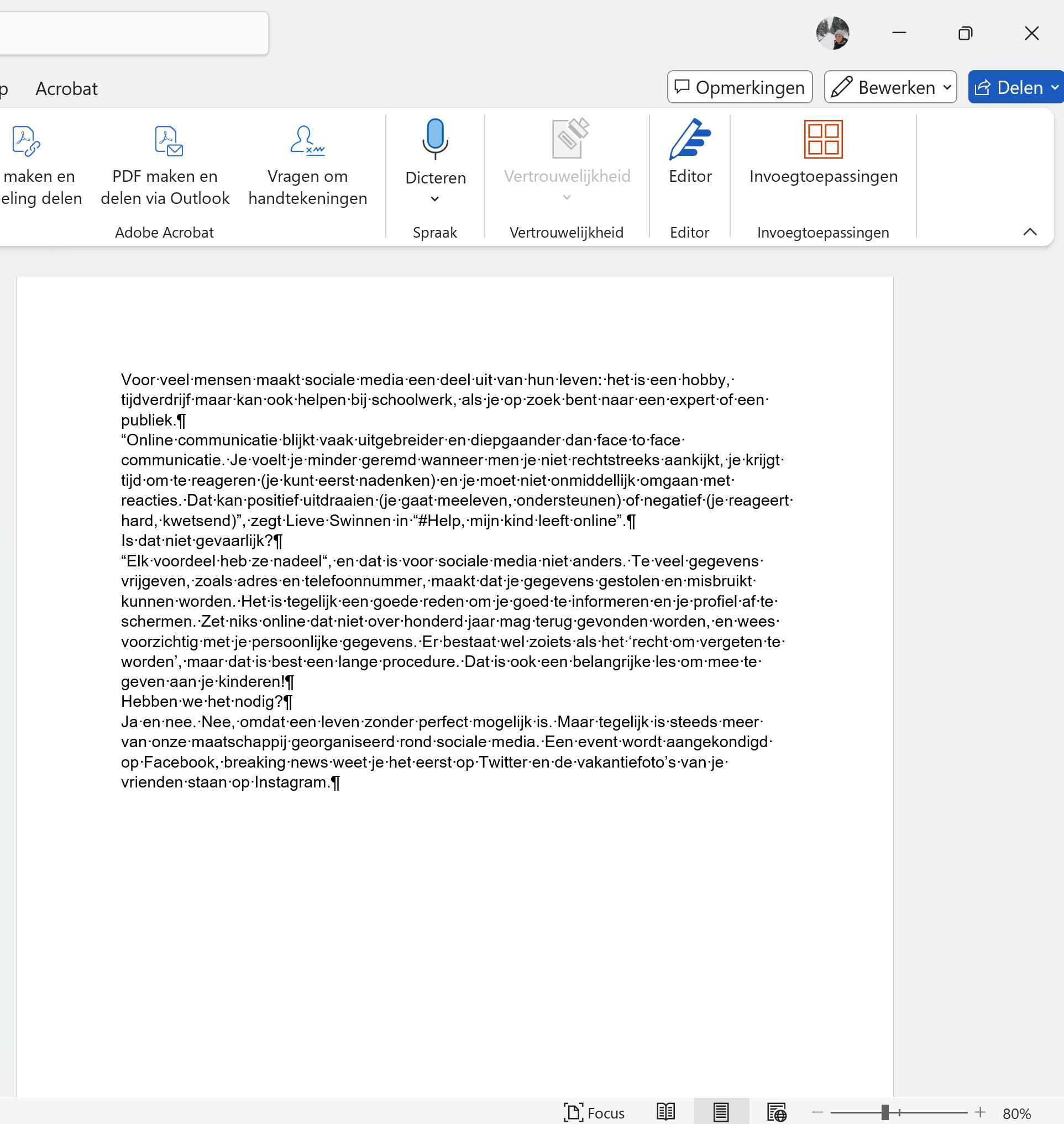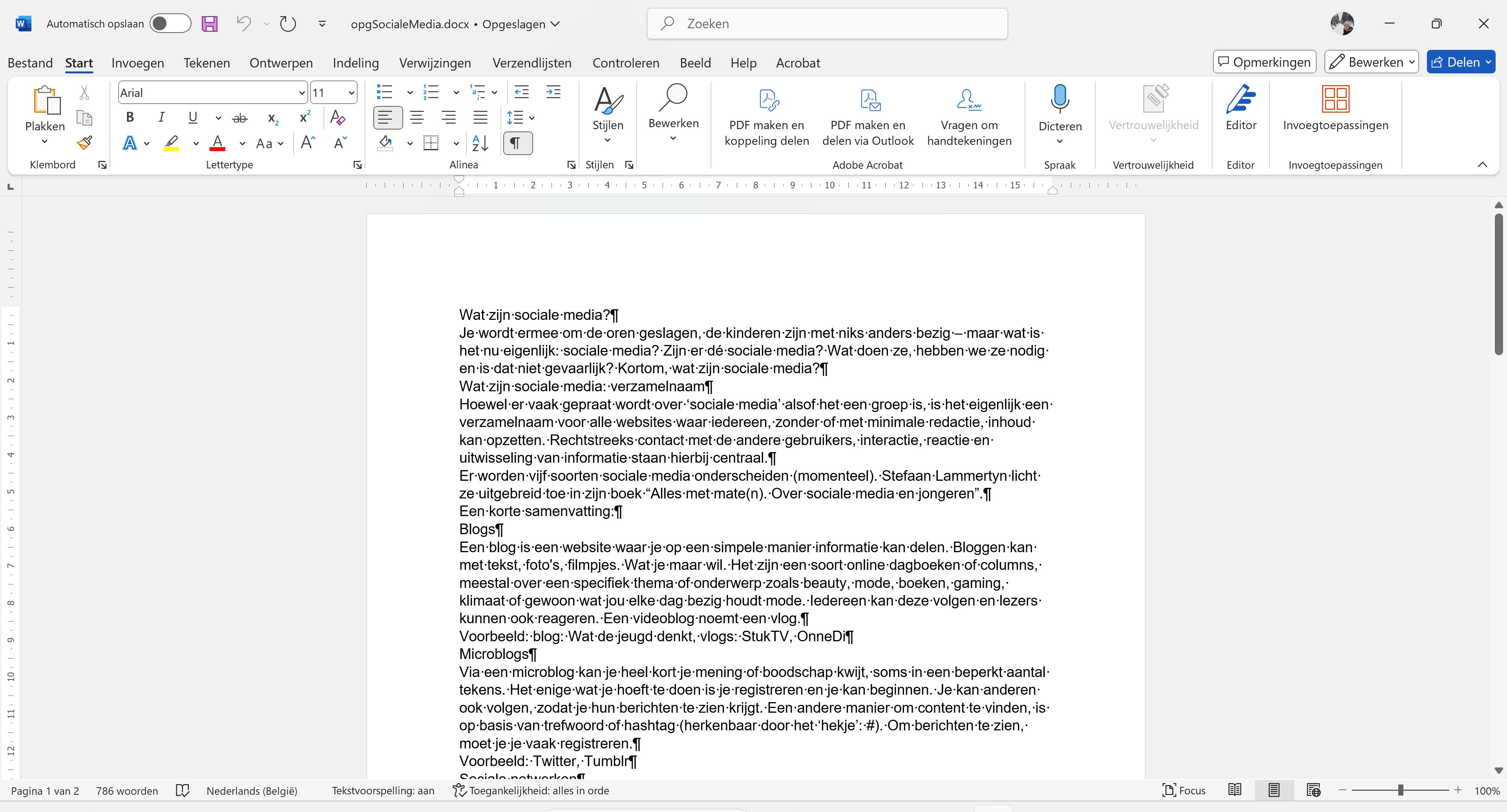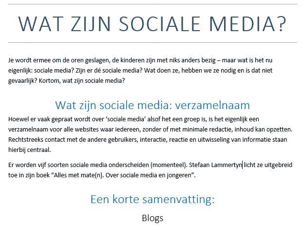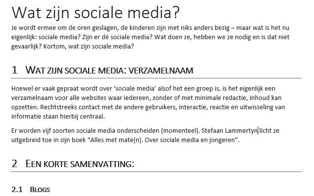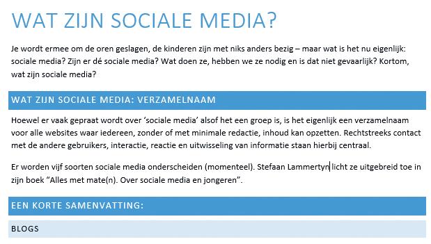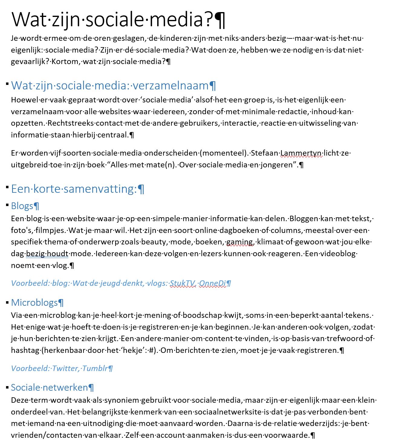Open opgSocialeMedia en breng de onderstaande stijlen in de tekst aan.