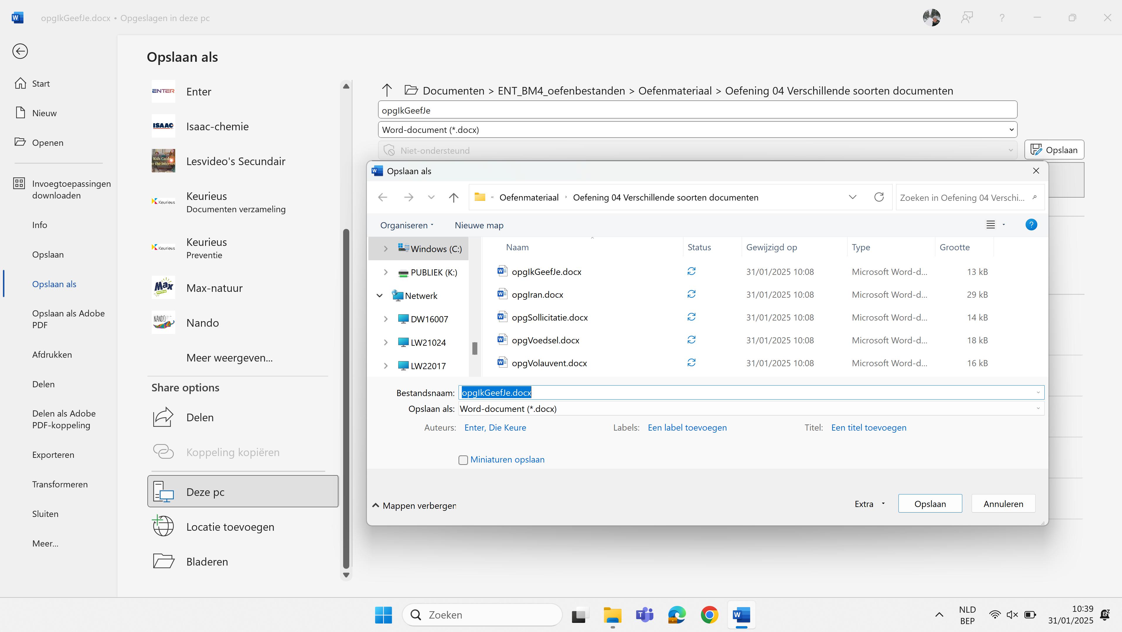 - Kopie opslaan, wanneer je het document wilt bewaren op een nieuw plaats of met een andere naam.