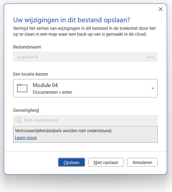Bij het sluiten van je bestand, vraagt het programma automatisch of je de wijzigingen wilt opslaan. Vergeet dit niet te doen!