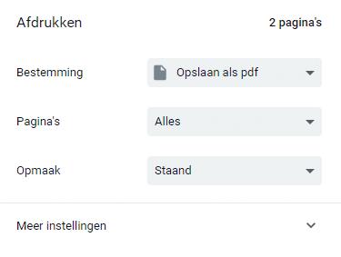 • Ga naar het menu Afdrukken Selecteer een pdf-printer Druk op Afdrukken.