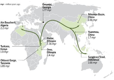 De mens verbleef eerst in Afrika en kon daar goed aarden. Bij aanvang van het meest recente glaciaal, zo’n 100 000 jaar geleden, begon de mens te migreren naar elke uithoek van de wereld. Deze koude periode zorgde er onder andere voor dat continenten aan elkaar verbonden werden door grote ijsmassa’s waardoor de mens van het ene continent tot het andere kon wandelen.