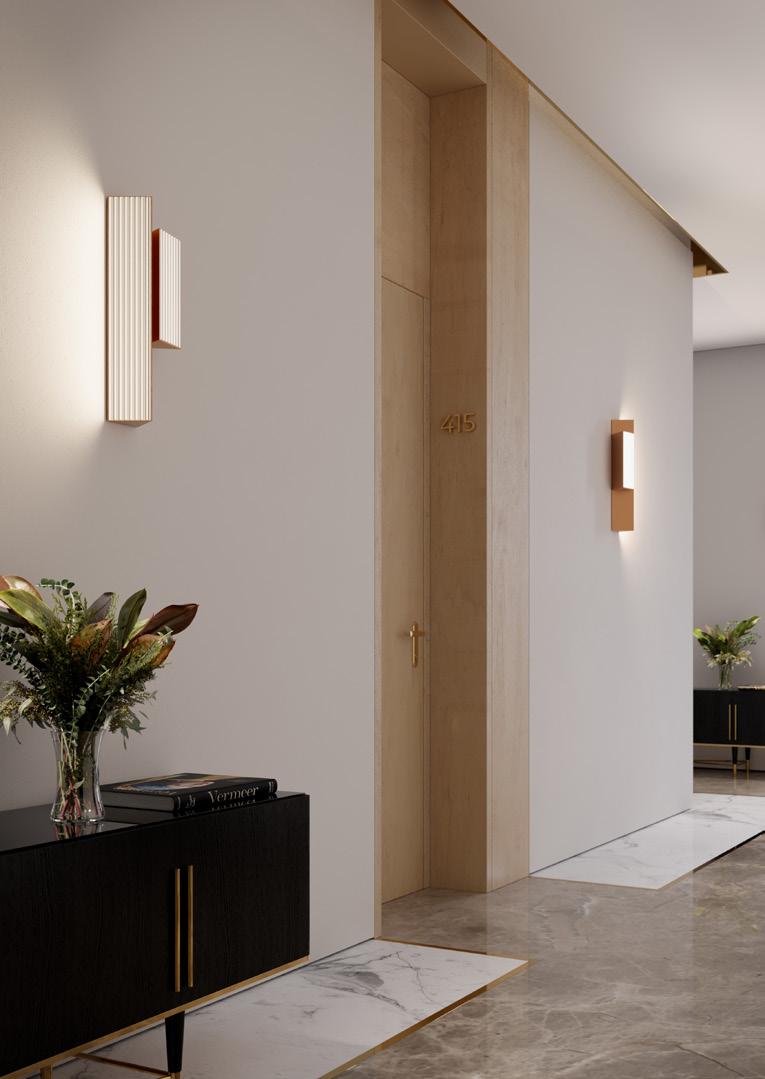In Stick la luce si propaga, sapientemente modulata, attraverso un diffusore con effetto vetro cannettato, contenuto all’interno di un estruso metallico nelle finiture satinate rame e nickel dorato.