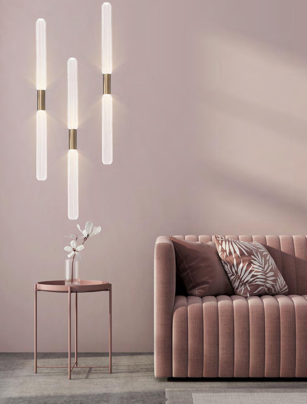 a pendant and wall sconce, which can be showcased in clusters or as a lone focal point. The wall sconce is especially beloved in a hallway or bedroom, transforming a conventional layout to an extraordinary spacial design. The collection's stunning, yet unapologetic, shapes can elevate any setting to a space that demands to be seen and remembered.