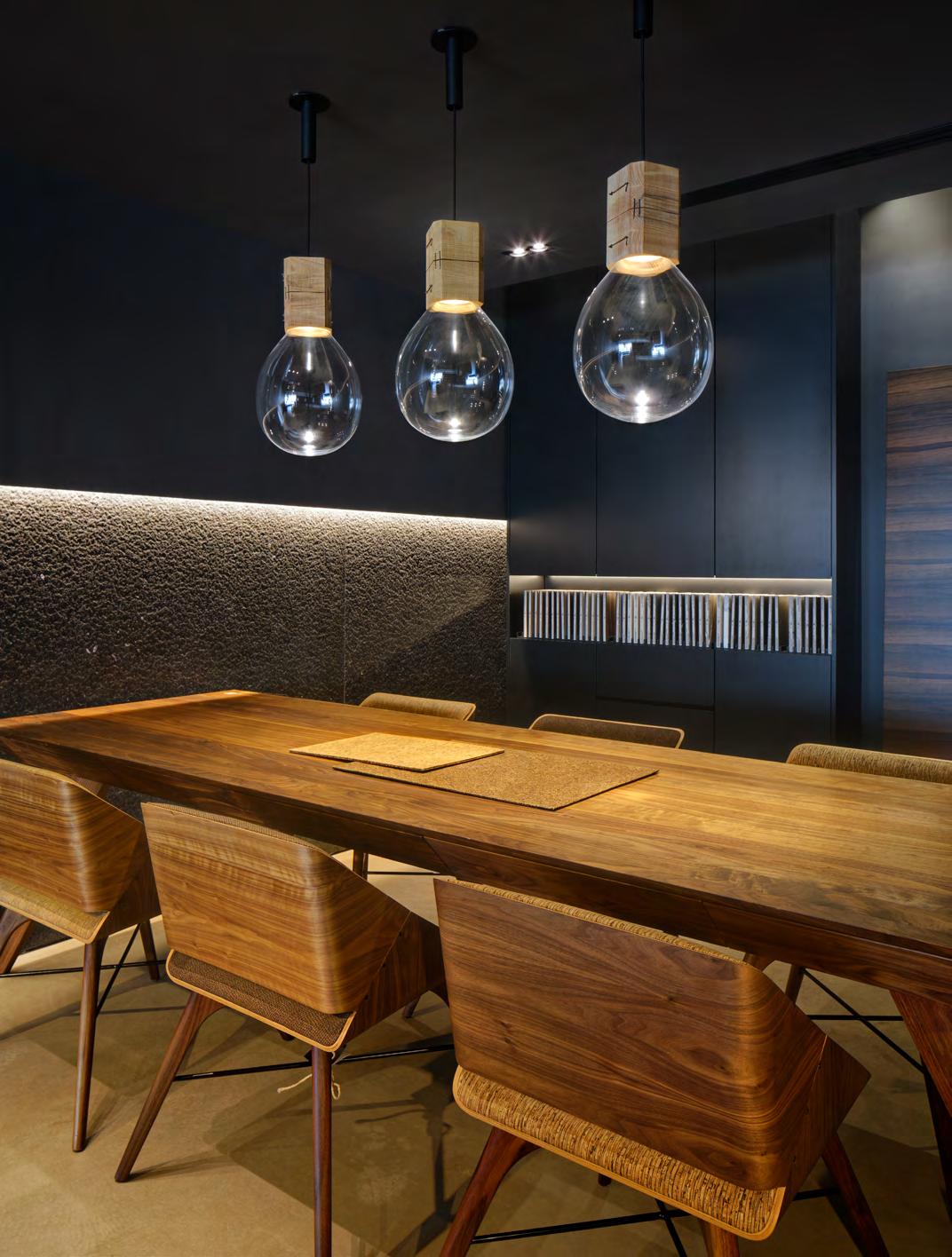 The collection consists of pendants in three sizes and a table lamp –making it a flexible tool for creating a bespoke space with its own unique journey. Because the collection’s spacial design concept is so versatile, it can be displayed alone or in clusters over dining tables, staircases or hospitality entrances, elevating guests from a fixed locale to a memorable, immersive experience.