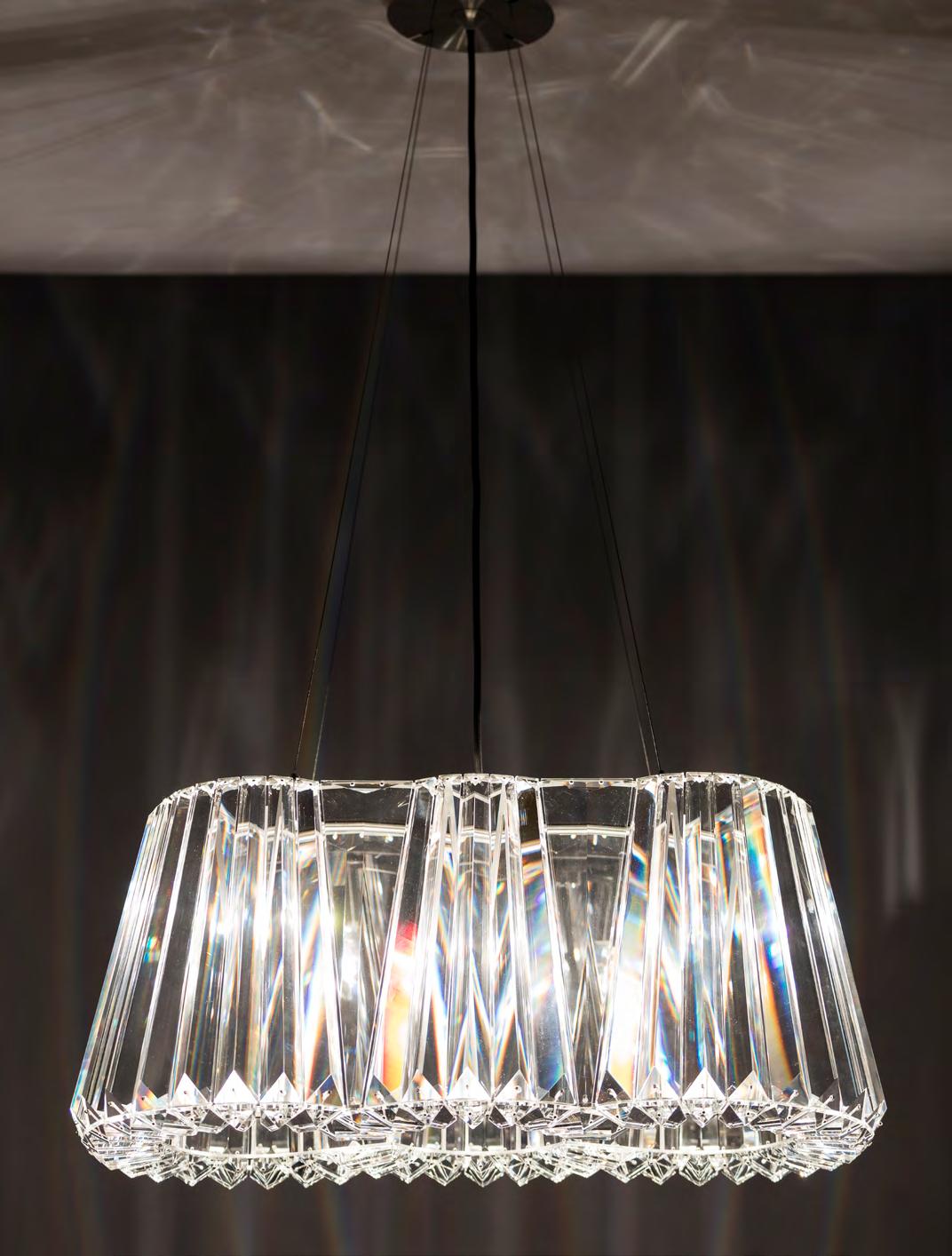 of the chandeliers into a contemporary form and scale in order to fit modern spaces. Elegant, clean and refined, the Neverending Glory offers a collection of pendants, floor lamps, table lamps and wall sconces. It provides limitless options to shape a space and redefine it with new purpose and feeling.