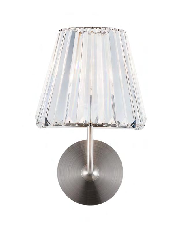 Wall Sconce CL001WA Weight / 3,7 kg / 83,5 lbs Primary Material / Crystal 200 mm / 7 7/8" 370 mm / 14 9/16" by Gabriela Náhlíková Finishes / Metal Parts Brushed Stainless Steel Certification / CE, UL E14 CE E12 UL LED Colors Colors Colors Colors Colors 01 01 64 64 01 140 mm / 5 1/5" 270 mm / 10 5/8" CUSTOM LED LED CUSTOM LED CUSTOM