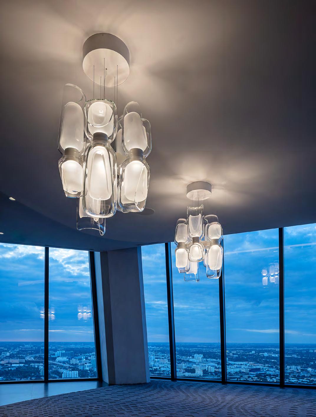 a gentle glow. Because the collection has an unwaveringly clean and thoughtful design language, it is exquisite in clusters, reshaping a space with breathtaking softness and vulnerability. The ICE storyline adds a greater depth to the space between the design, while with Press, the light is hushed and indistinct, uplifting guests in an ambience of warmth and awe.