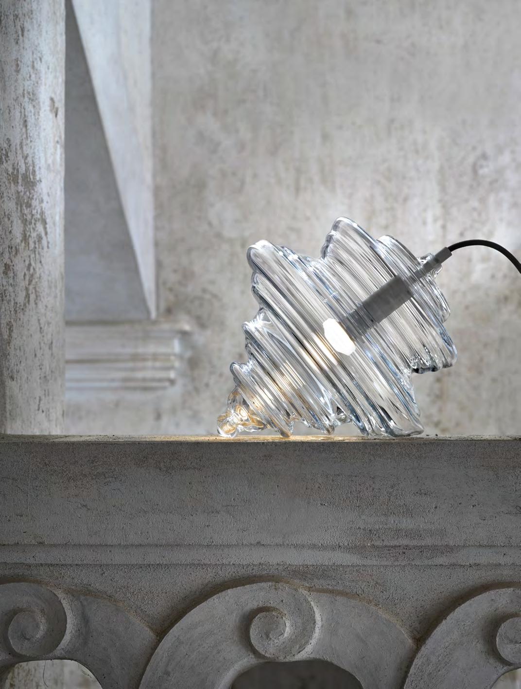 200 mm / 7 7/8'' by Arik Levy Table Lamp CL017TA Weight / 3,5 kg / 7,7 lbs Primary Material / Hand Blown Cut Glass 187 × 148 mm / 7 3/8" × 5 13/16" LED MODULE Finishes / Metal Parts Lacquered Black Matt Certification / CE, UL, CCC Colors 45 08 07 04 Colors
