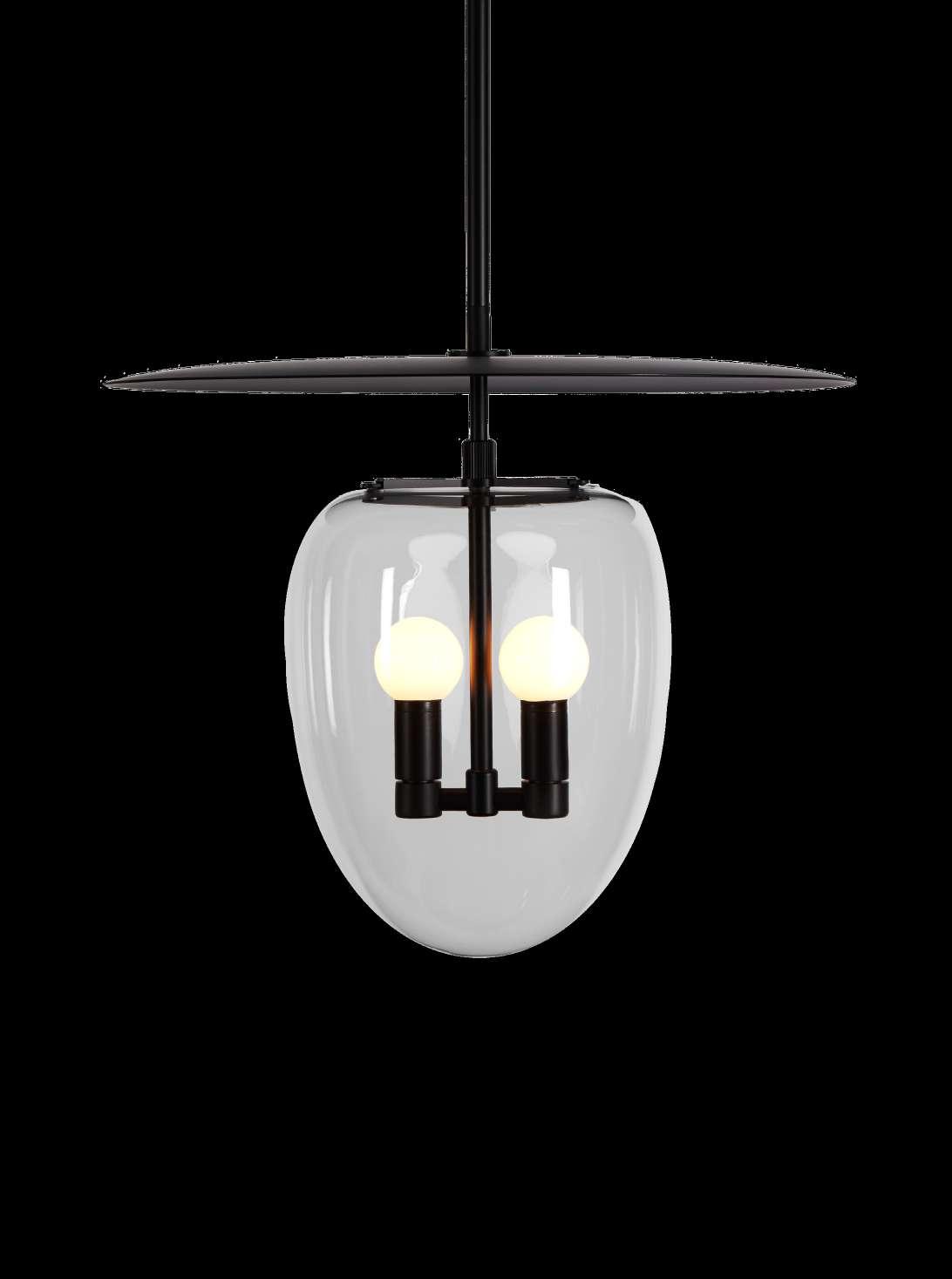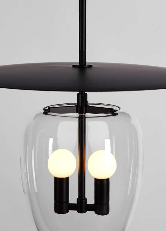 LIGHTING & MATERIALS Pendant — 2 Lights Black / Straight-Cut Glass