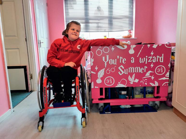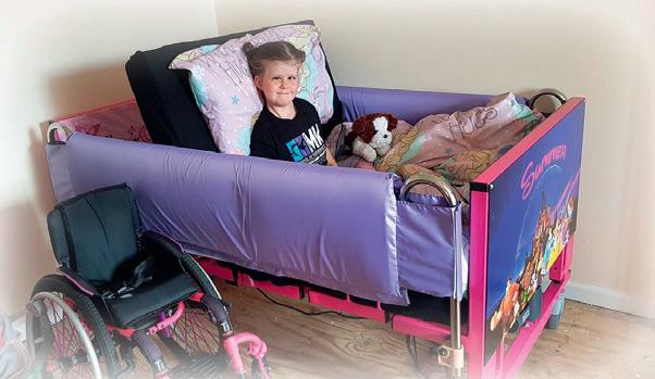 Summerisanine-year-oldgirlliving withSpinaBifida.“Thisbedhasbeen absolutelyamazingforourdaughter. Itgiveshertheindependencetobe abletotransferintoandoutofbed andtositherselfupwithoutrelying onus.Ithasalsogivenustheability totendtoheratacomfortableheightwithouthurtingourbacks.”