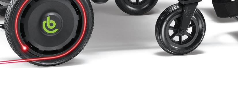 The Ypush also has an electronic anti-tip system that cuts power to the motors if both front wheels leave the ground, a totally new feature of the design, which also incorporates a sensor so that the power won’t operate unless there is someone in the seat,” explains Brian.
