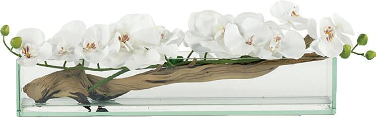 G. R742A23 - 26”H x 56”W x 31”D White Orchids in Elongated Wood Statement