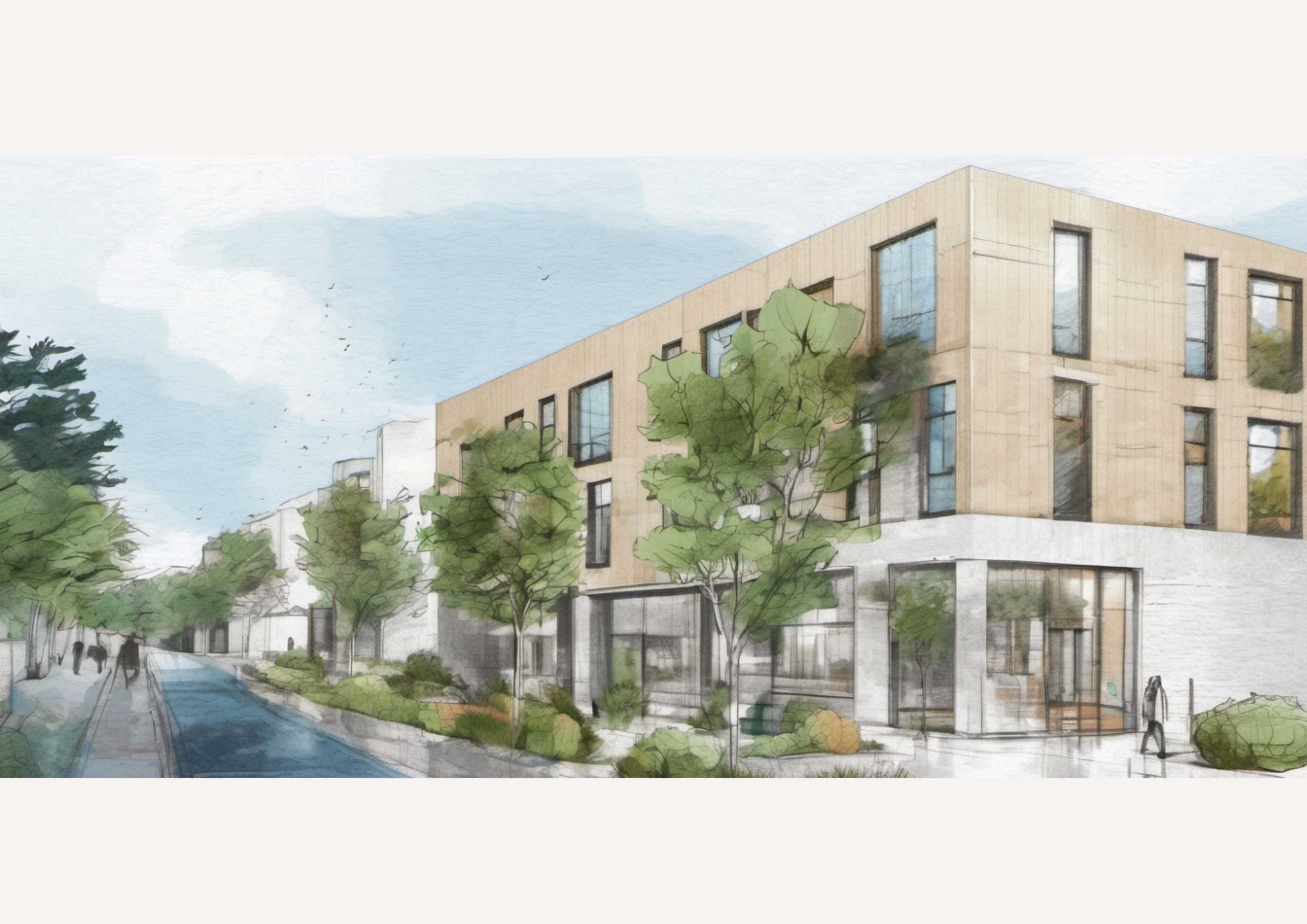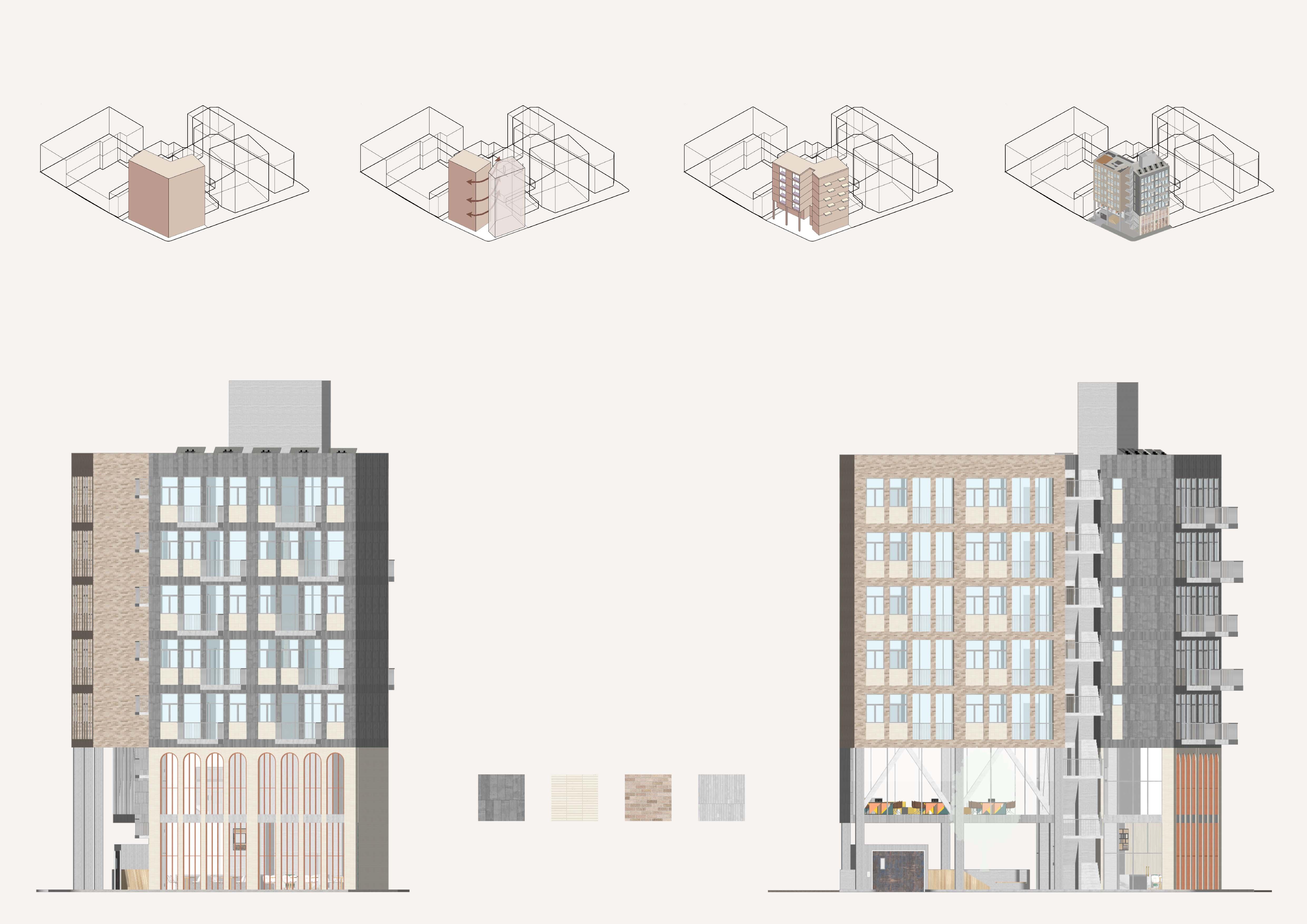 Setbacks from both sides create more urban space and increase flexibility.