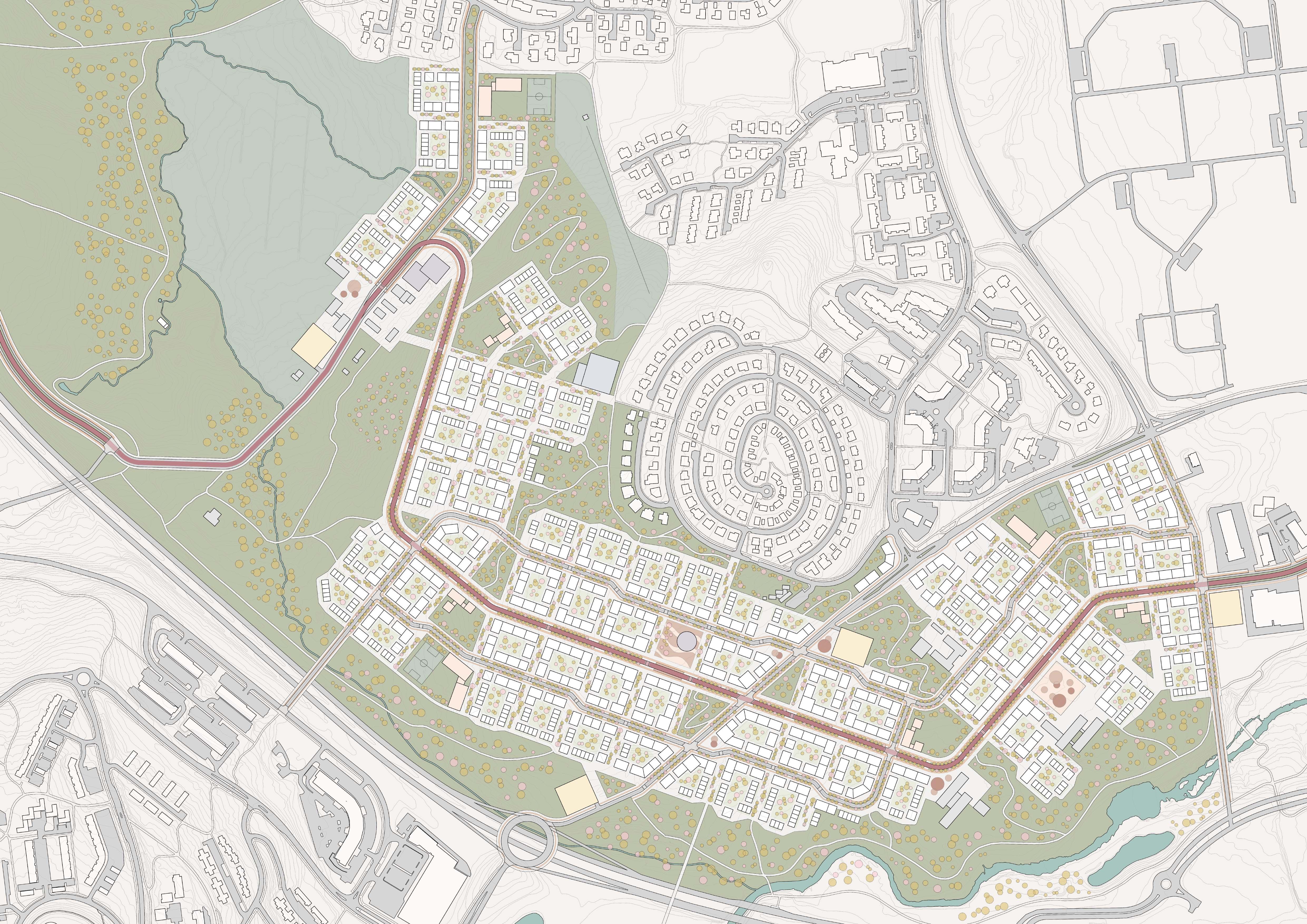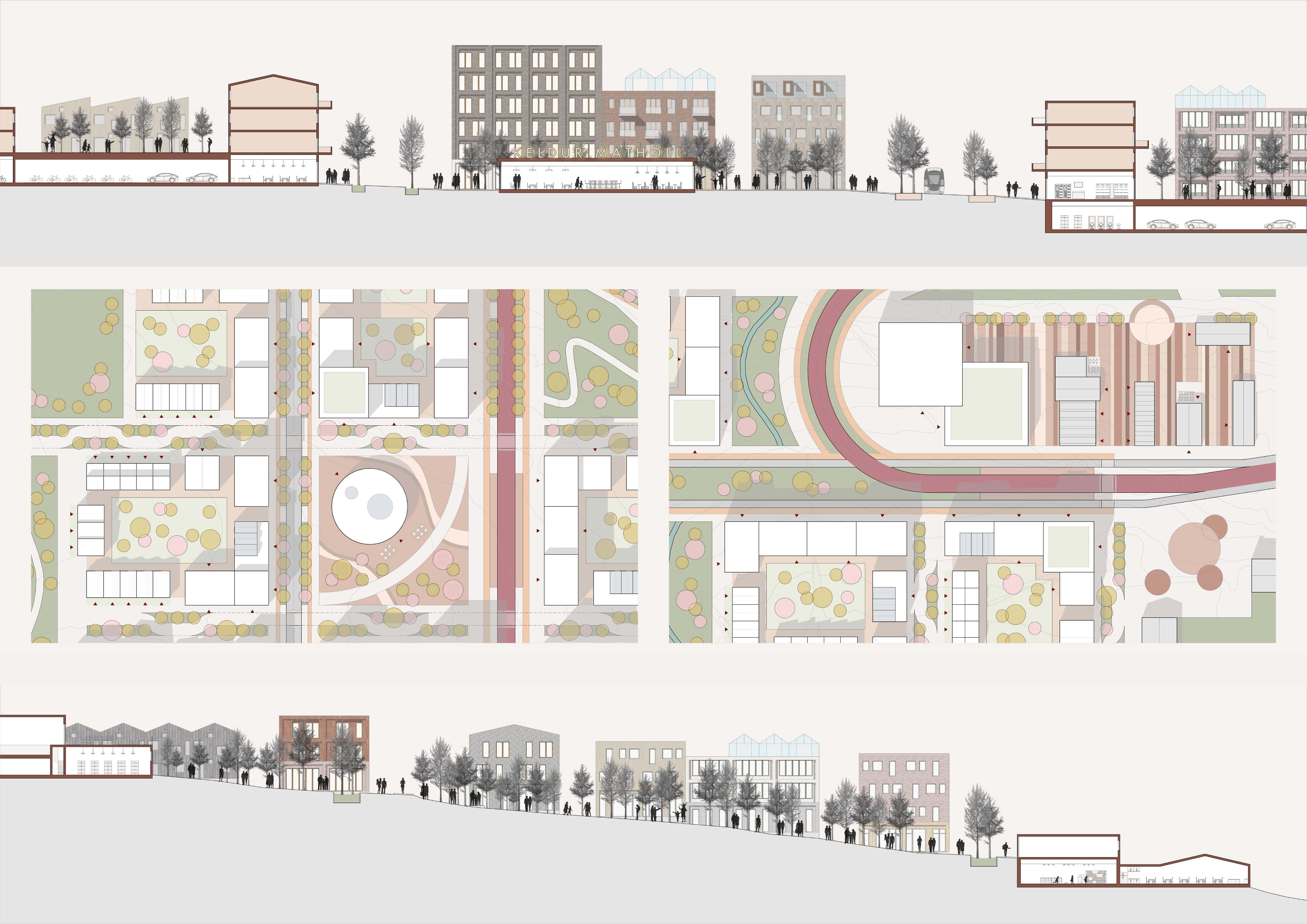 Located near Reykjavík, Keldur has been overlooked for decades due to a car-centric development mindset. Nevertheless, its hilly terrain and scenic vistas offer growth potential. This proposal aims to transform the area into a bustling urban hub, alleviating strain on Reykjavík’s downtown. It seeks to redefine Keldur as a vital food production and knowledge dissemination center, addressing future challenges. Keldur will evolve into a dynamic urban space by fostering economic growth and innovation, offering sustainable solutions to urban development pressures.
