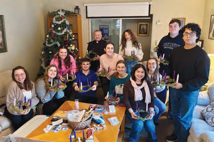 On December 4, Father Carlos Castillo, chaplain of the Catholic Campus Ministry at Monmouth University in West Long Branch, gathered with students in the school’s Catholic Center to create Advent wreaths. After assembling the wreaths, Father Castillo blessed them. The evening concluded with food, faith, and fellowship, as the group came together to mark the beginning of the Advent season. Courtesy photo.
