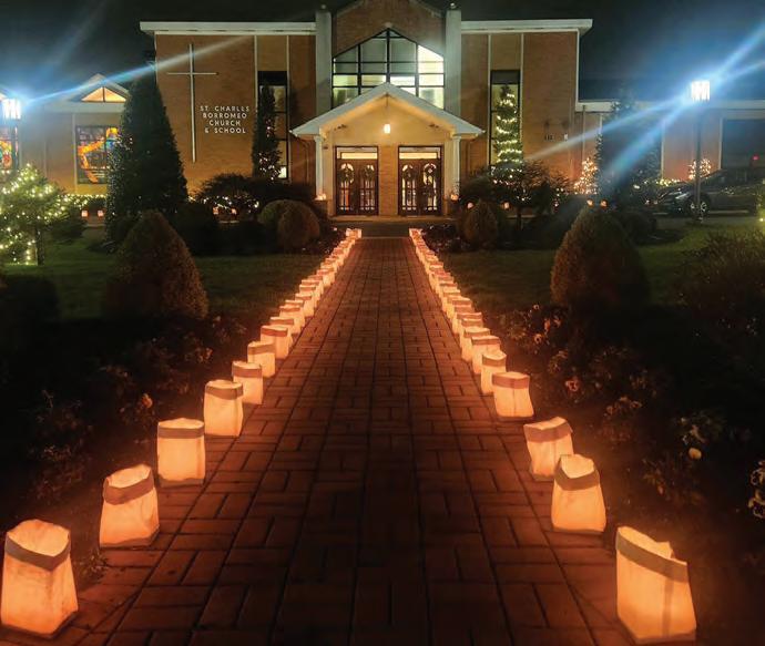 Luminaries light the pathway leading to St. Charles Borromeo Church, Cinnaminson, on Christmas Eve. Courtesy photo