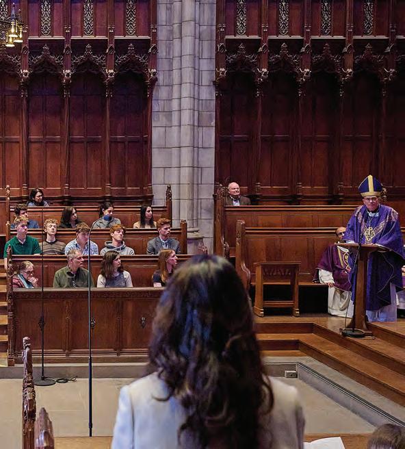 p Bishop O’Connell speaks to the congregation during his homily for the Mass he celebrated in Princeton University Chapel for Catholic students of the Aquinas Institute and their families. Mike Ehrmann photo