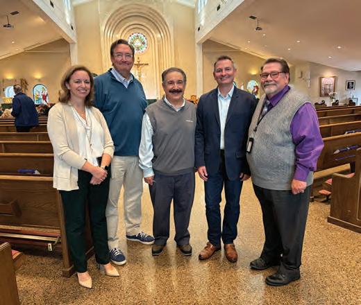 Mike Sielski, second from right, meets with Department of Catholic Schools staff from left, Bonnie Milecki, assistant superintendent of School development and operations; Dr. Vincent de Paul Schmidt, superintendent; Dennis Guida, diocesan coordinator of Catholic Athletes for Christ, and Daniel O’Connell, assistant superintendent of curriculum and instruction.