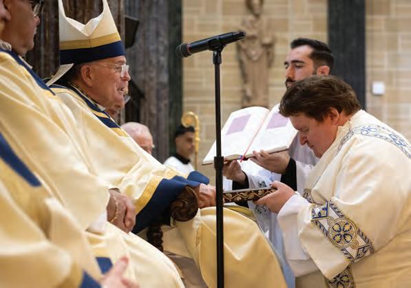 Rev. Mr. Brian Meinders receives the Book of the Gospels during the diaconate ordination rite May 2023. Jeff Bruno photo