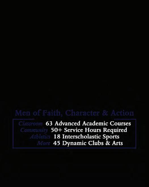 The principles of faith and service remain ever-present in our community, always giving our students a chance to help those who are less fortunate. Over the past five years, each graduating class has averaged over 100 hours of service per student, which greatly exceeds the 50 hours required for graduation. Meanwhile, our championship-winning athletics and dynamic extracurricular activities allow for our students to foster an unparalleled brotherhood during their time at the Academy.