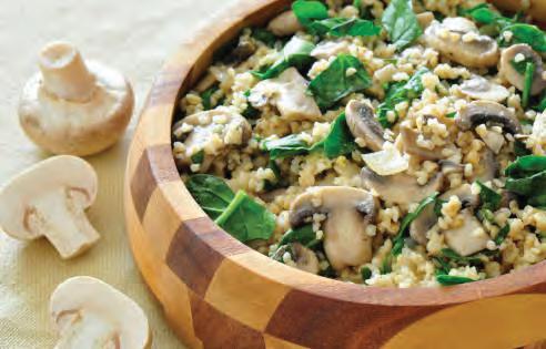2. Add mushrooms and sauté until beginning to brown, stirring often. Stir in bulgur and continue to stir until browned.