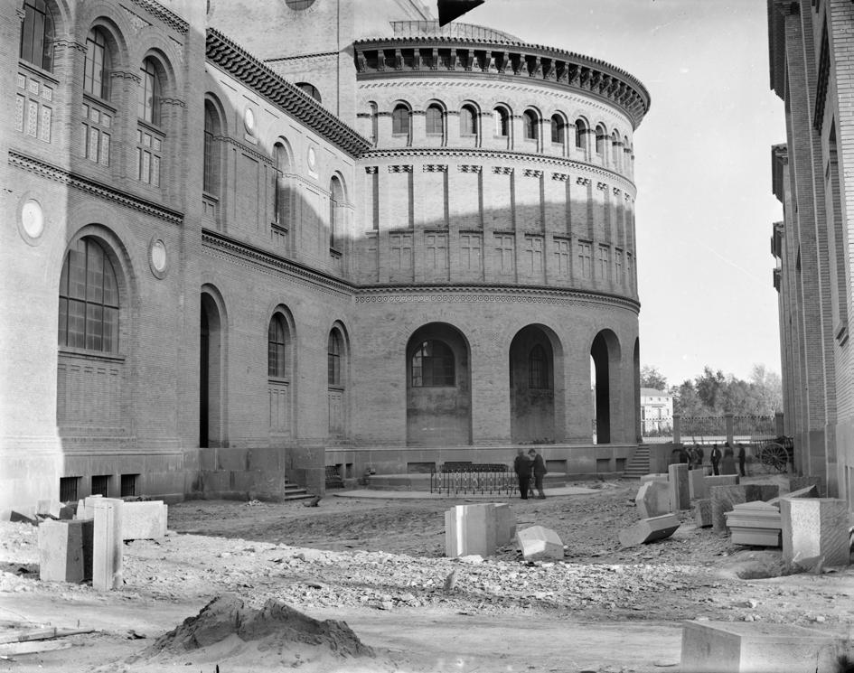 Desconocemos si la realización del reportaje arquitectónico del edificio Paraninfo, rara avis en la fotografía local, y la creación del Gabinete Fotográfico de Medicina y Ciencias obedecieron a una iniciativa personal o a un acuerdo o encargo institucional, pues hasta el momento no hemos localizado noticia alguna al respecto en los archivos de la Universidad. Sin embargo, gracias a ellos disponemos de una información gráfica de primer orden sobre esos edificios universitarios y también sobre la historia de la ciudad de Zaragoza, una información que además parece tener una intención objetiva y neutra, más cercana a la evidencia empírica del dato científico que a la difusión periodística, aunque algunas de las fotografías fueran utilizadas en los medios impresos en forma de fotograbados de línea obtenidos a partir de dibujos. Esa carga denotativa no está exenta, no obstante, de cierto interés por mostrar lo que de novedad y aportación, en clave de progreso y modernidad, implicaba ese conjunto arquitectónico, algo que también se observa en otras fotografías del fondo.