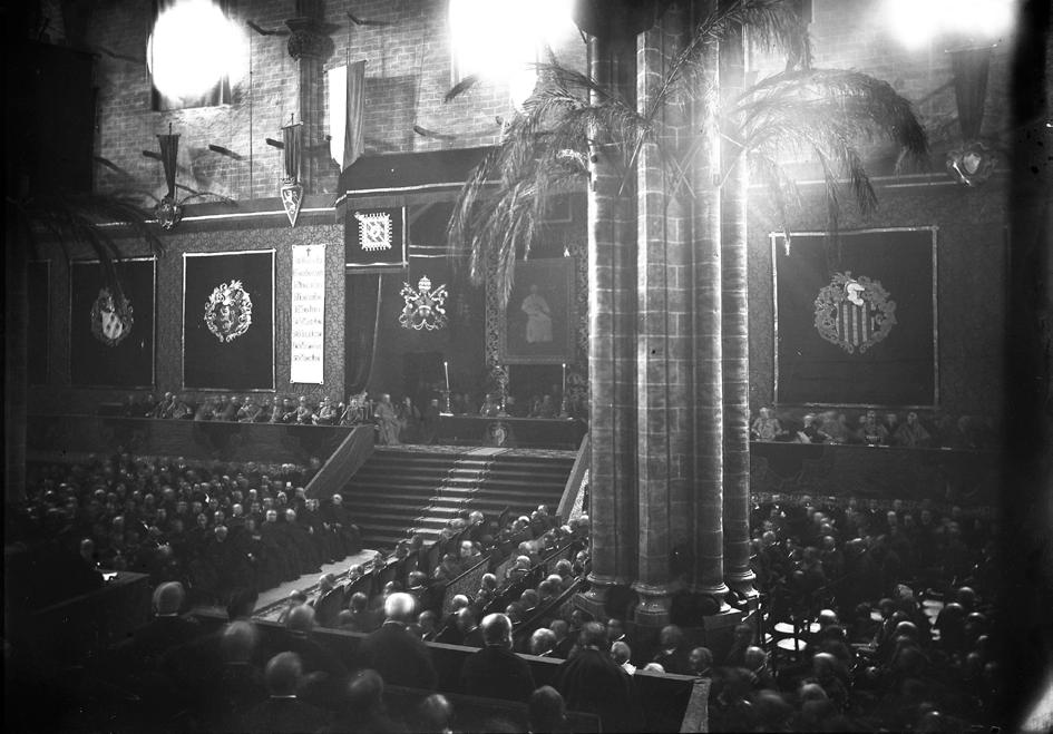 El conocimiento de la existencia de estas fotografías se lo debemos al periodista Rafael Bardají, quien en junio de 2017 las localizó durante una visita a un coleccionista de una localidad cercana a Zaragoza. En una primera inspección visual identificó correctamente el edificio Paraninfo de la Universidad de Zaragoza en algunas de las tomas, a las que adjudicó una datación provisional de principios del siglo xx. En sucesivas visitas hechas por nosotros1 entre febrero y abril de 2018 pudimos realizar un recuento minucioso del material hallado y disponer de una información más precisa sobre su contenido, y como consecuencia de todo ello la Universidad de Zaragoza, a través de su Vicerrectorado de Cultura y Proyección Social, decidió iniciar en el mes de abril un proceso de gestión patrimonial de los negativos que incluiría, entre otras actividades, una exposición temporal en el edificio Paraninfo y la publicación de su catálogo.
