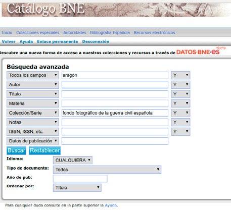 works in Aragon. Photographs of the Civil War in Aragon.María Moliner, bibliotecaria y aragonesa, «quería organizar el mundo a través de las palabras», según A. Pilar Rubio.2 Nuestro deseo al organizar una presentación de las fotografías sobre Aragón custodiadas por la Biblioteca Nacional de España (BNE) a modo de diccionario es rendir un homenaje a su figura y a su obra. Así pues, en nuestro de la A de Aragón a la Z de Zaragoza, sin olvidar ni Huesca ni Teruel, daremos a conocer piezas fotográficas patrimoniales relacionadas con el territorio aragonés, bien porque sus autores estuvieron afincados en él, bien porque registran sus paisajes, sus figuras o sus ciudades. De este modo, de letra en letra y de entrada en entrada, articulamos esta presentación, que, lejos de ser exhaustiva, pretende dar pistas a todas aquellas personas que estén interesadas en rastrear las huellas de Aragón en los fondos fotográficos de la BNE, mostrar algunos ejemplos y explicar cómo acceder a ellos. O, dicho de otro modo, les invitamos, curiosos lectores, a que utilicen las herramientas que la Biblioteca, como institución pública que es, ofrece a la ciudadanía para tener acceso a más de dos millones y medio de piezas fotográficas en las que está representada una gran variedad de temas y de procesos fotográficos anteriores a la técnica digital.