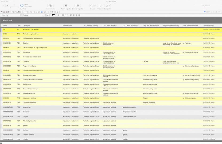 Los criterios y formatos de entrada de descriptores de los tesauros se plantearon en función de cuatro grandes grupos: