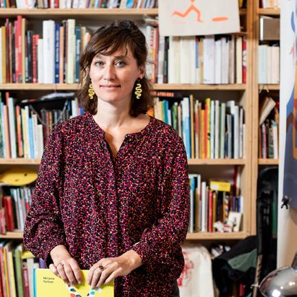 Mirjana Farkas comparte su tiempo entre su taller y su trabajo en la Bibliothèque de Genève, donde es responsable de la colección de carteles, un archivo de 120 000 documentos del 1850 hasta hoy.