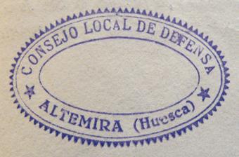 Arriba, sello del Bloque Popular de izquierdas que, encabezado por Jaime Plá, consiguió la mayoría en el Ayuntamiento de San Esteban de Litera en las elecciones de febrero de 1936. Abajo, sello del Consejo Local de Defensa de San Esteban, que pasó a denominarse Altemira en el periodo que se inició tras el golpe de Estado del 18 de julio. (Archivo Municipal de San Esteban de Litera)