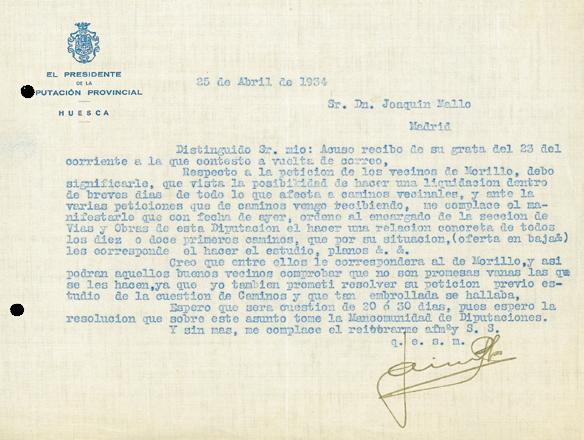 los pobres. La compraron una familia de San Esteban y otra de Tamarite, y algunos montes comunales también se vendieron a particulares con gran poder adquisitivo, lo que cortó el acceso al pasto y a la leña para las clases más humildes. En el pueblo algunas familias se dedicaban a la extracción y la preparación de yeso en pequeños hornos tradicionales. Ello era posible por la gran cantidad de este mineral que, aflora a la superficie en unas pequeñas sierras que forman parte del anticlinal Barbastro – Balaguer. Esta actividad fue evolucionando hacia una producción más industrial llevada a cabo por algún empresario, de modo que la elaboración artesanal quedó relegada al consumo propio. Sin embargo, fue una buena fuente de ingresos adicional en las épocas en las que el trabajo agrícola escaseaba, y más aún cuando finalizaron las obras del canal de Aragón y Cataluña.