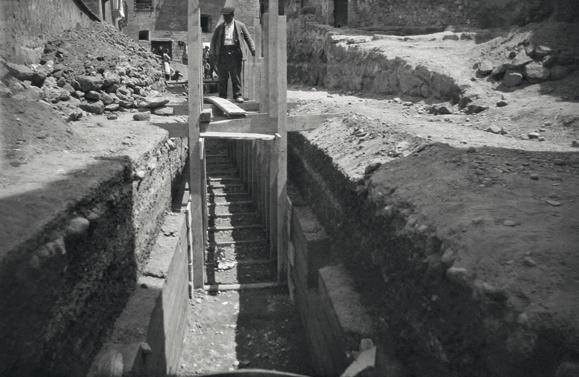 Fotografía tomada durante las obras de instalación del primer alcantarillado en San Esteban de Litera, que se proyectaron y se realizaron entre 1931 y 1934.